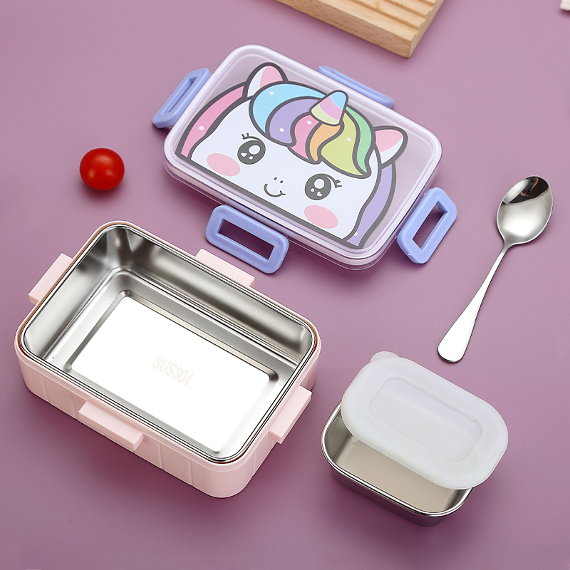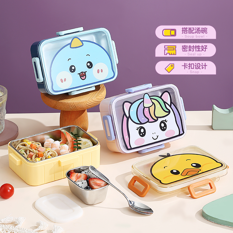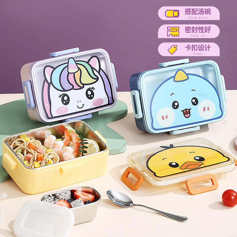 2531A-Cute stainless steel lunch box 600ml+soup bowl 100ml (with stainless steel spoon)