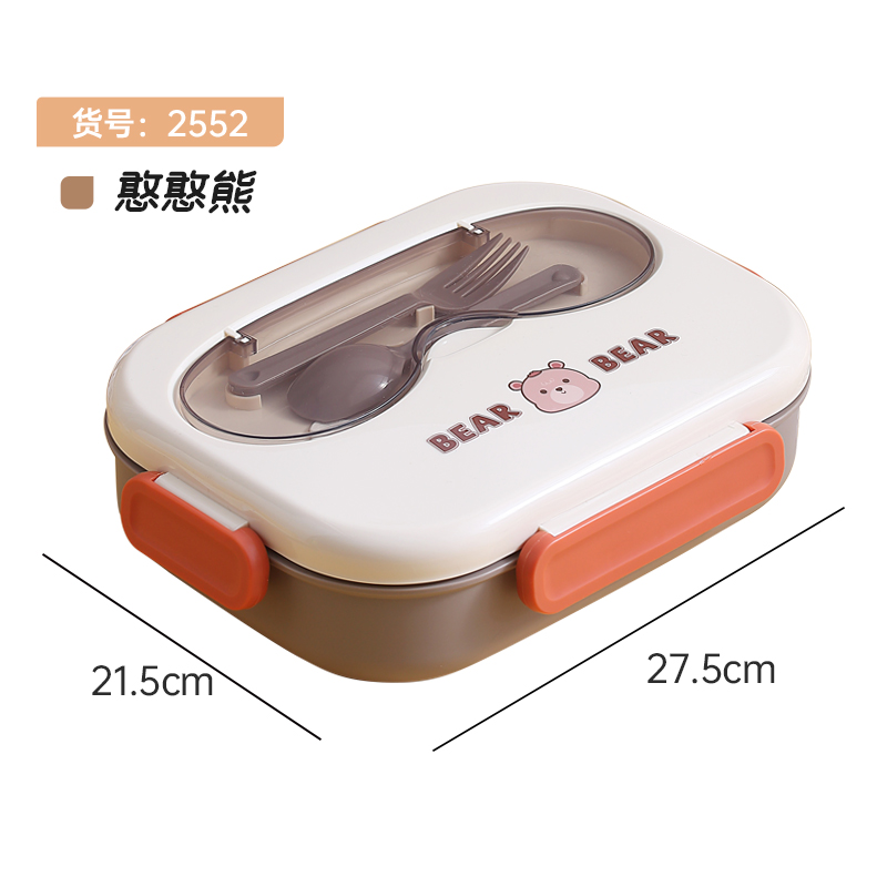 2552-Ins Cute 304 Stainless Steel Meal Box (4 compartments 1250ml+Steel Bowl 150ml+Stainless Steel Spoon Chopsticks+PP Fork Spoon)