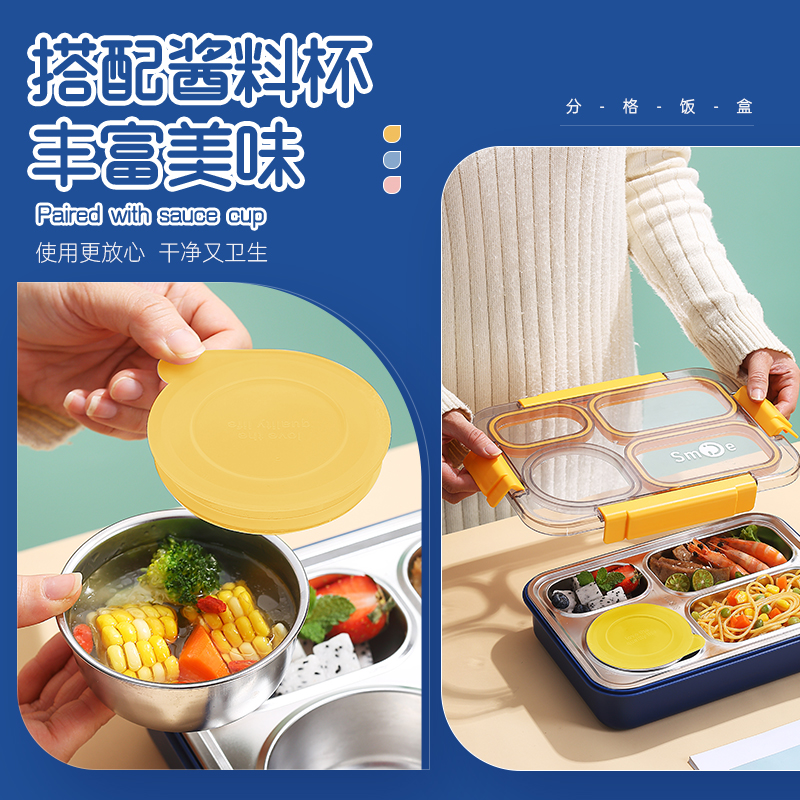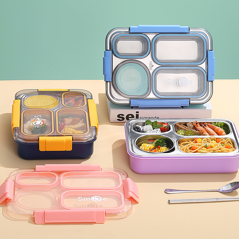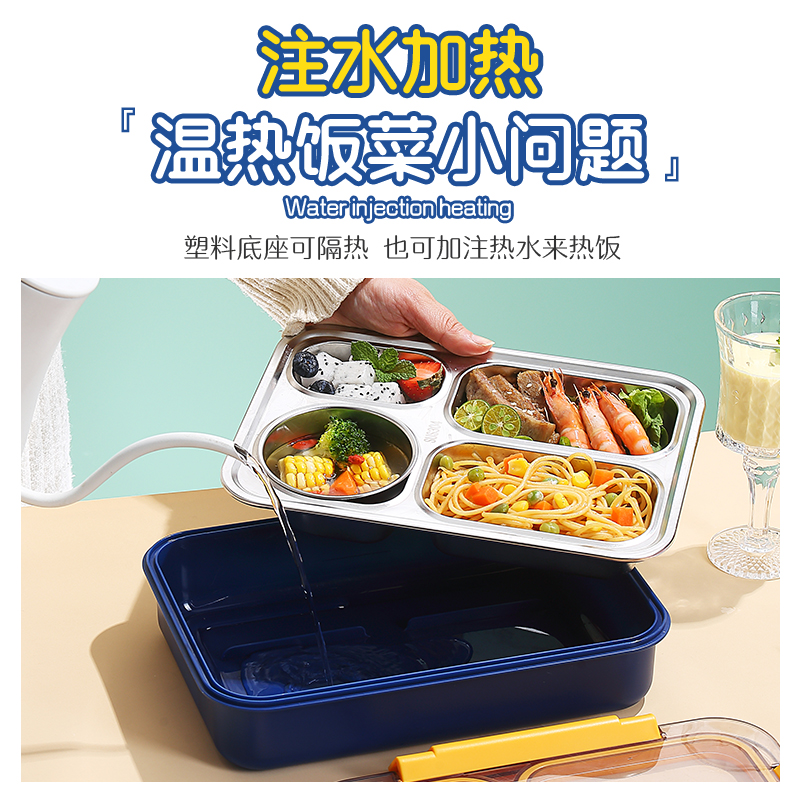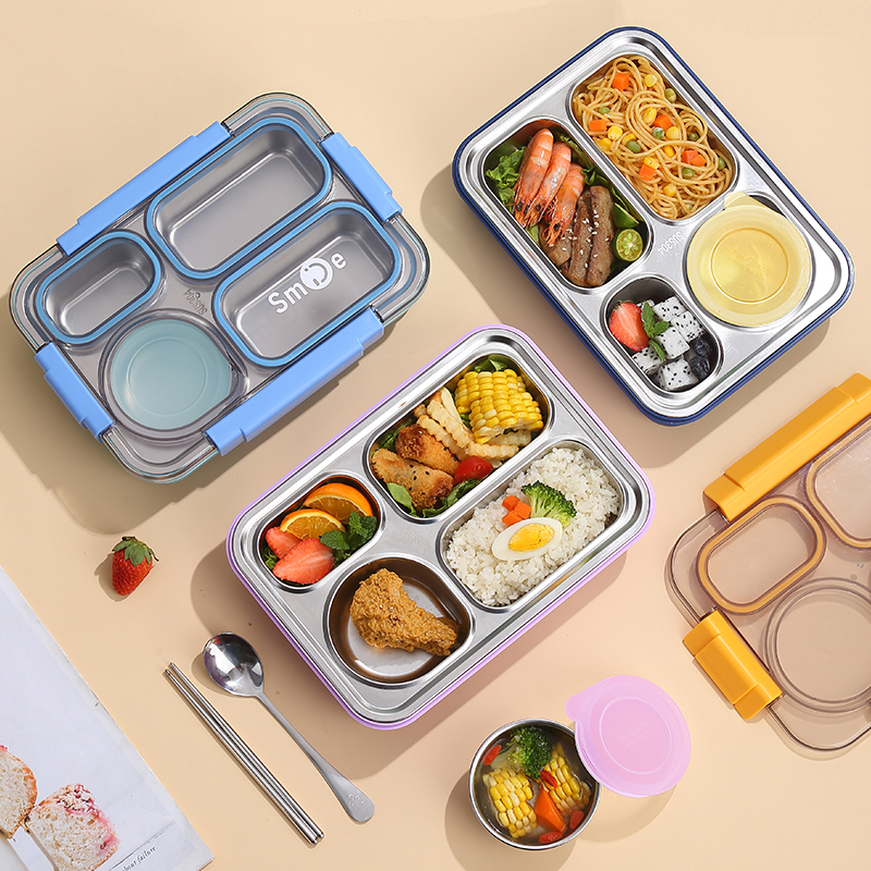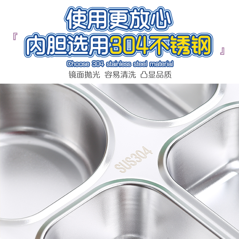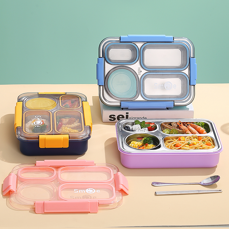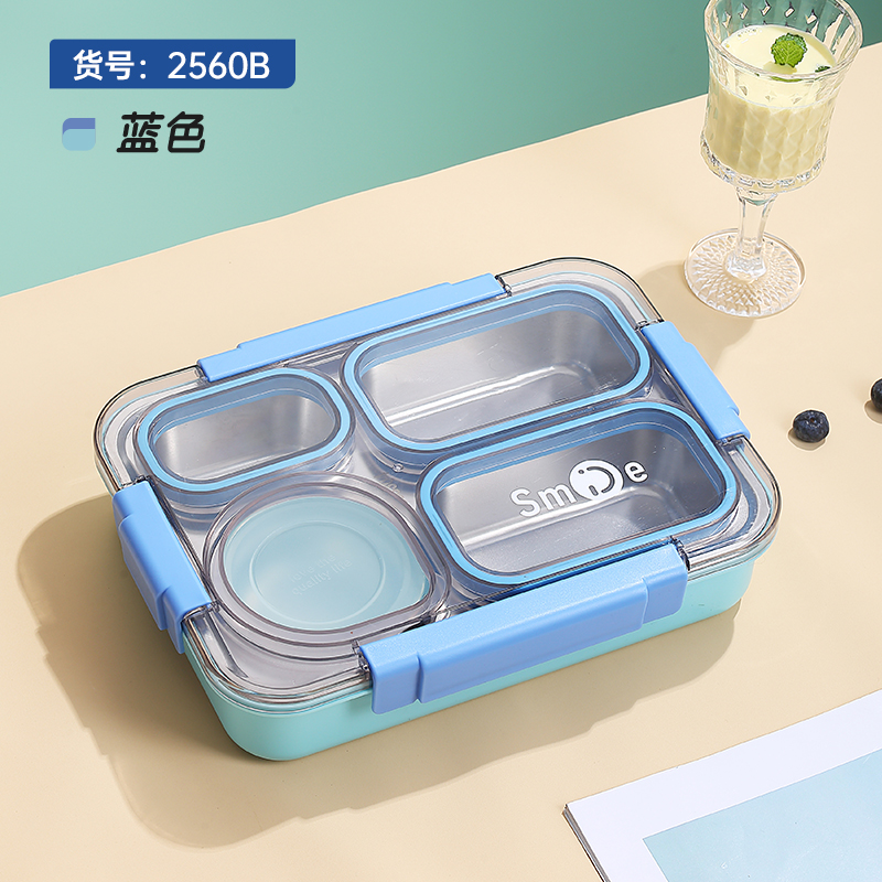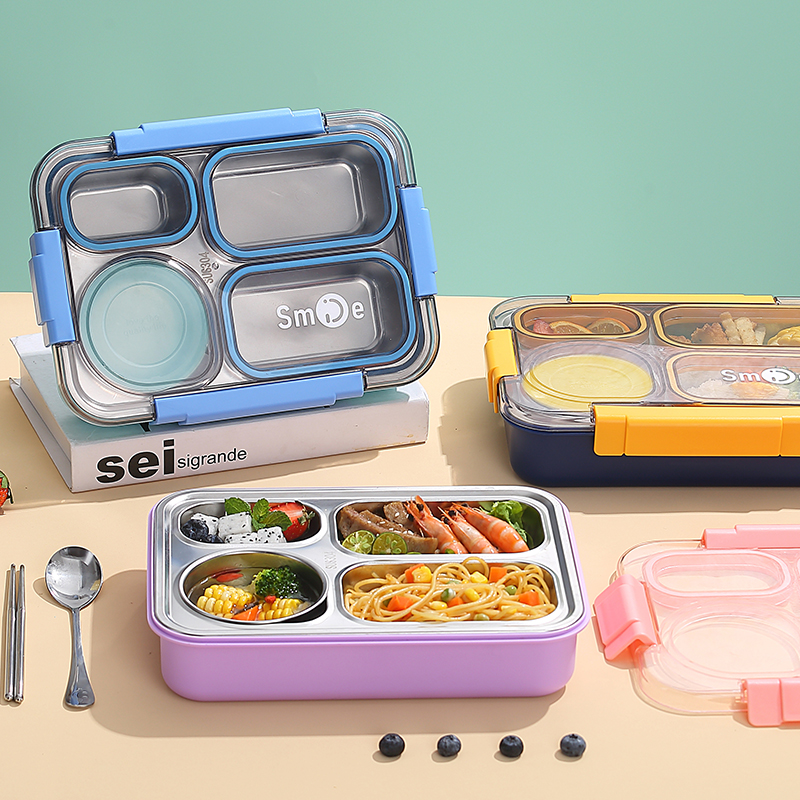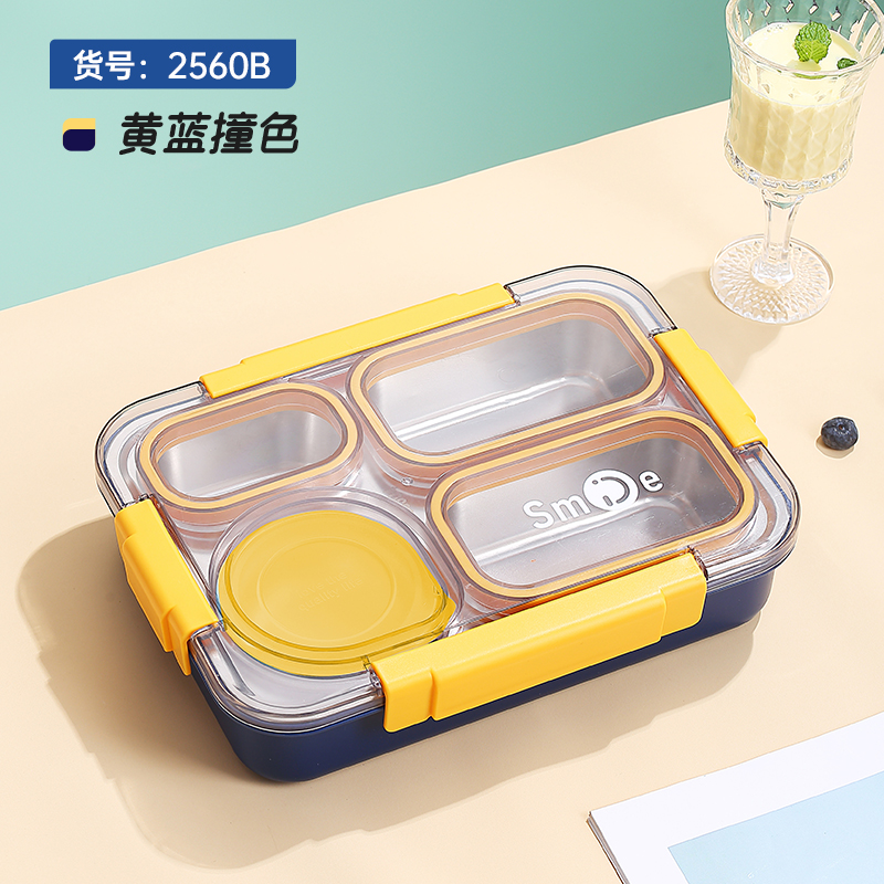 2560b-900ml independent sealed stainless steel lunch box (4 compartments+stainless steel bowl 150ml+stainless steel spoon chopsticks)