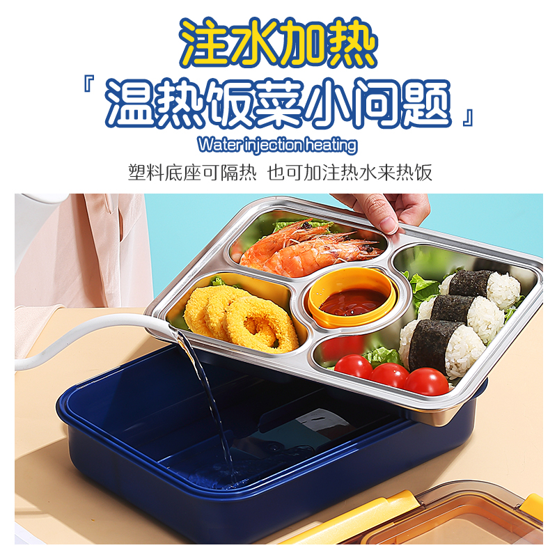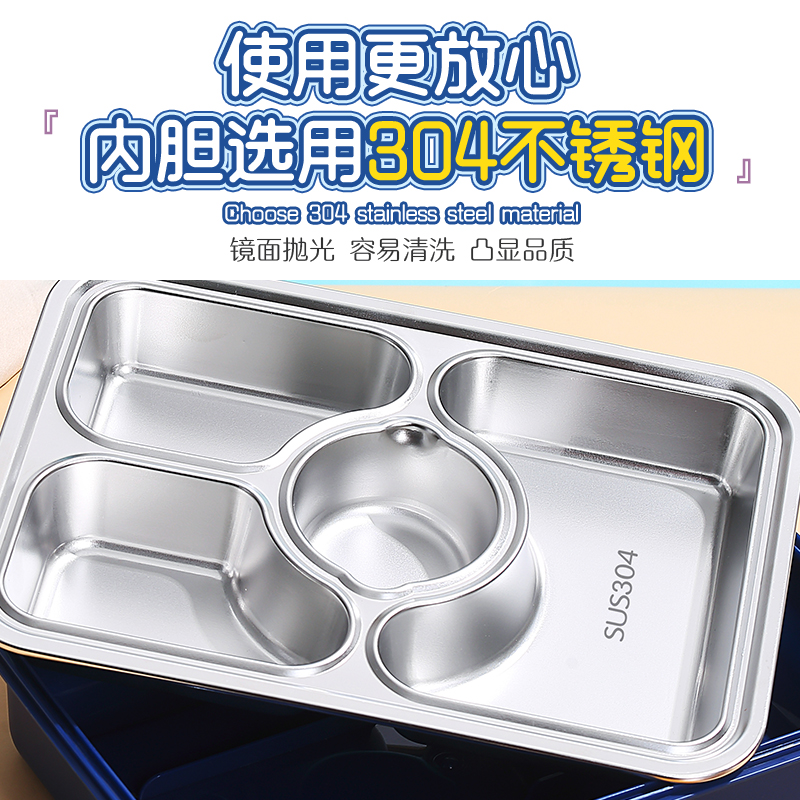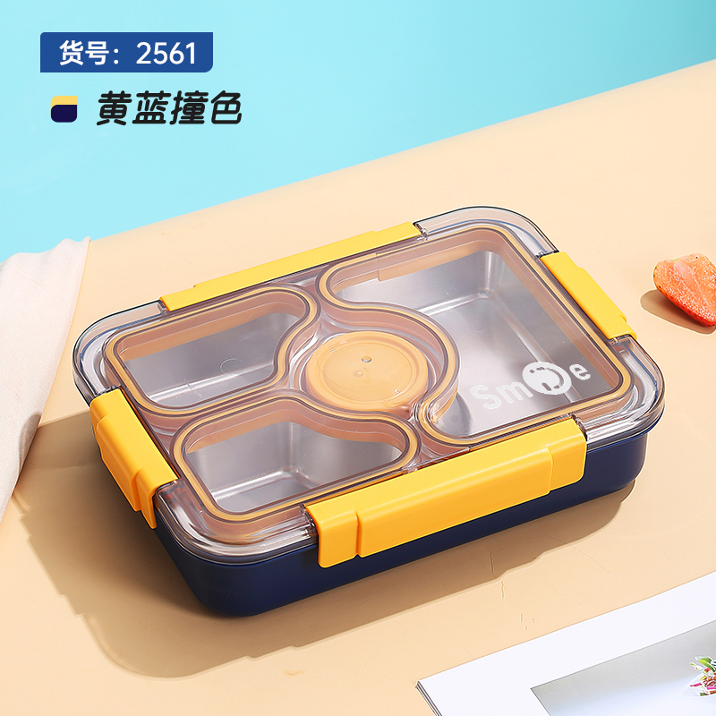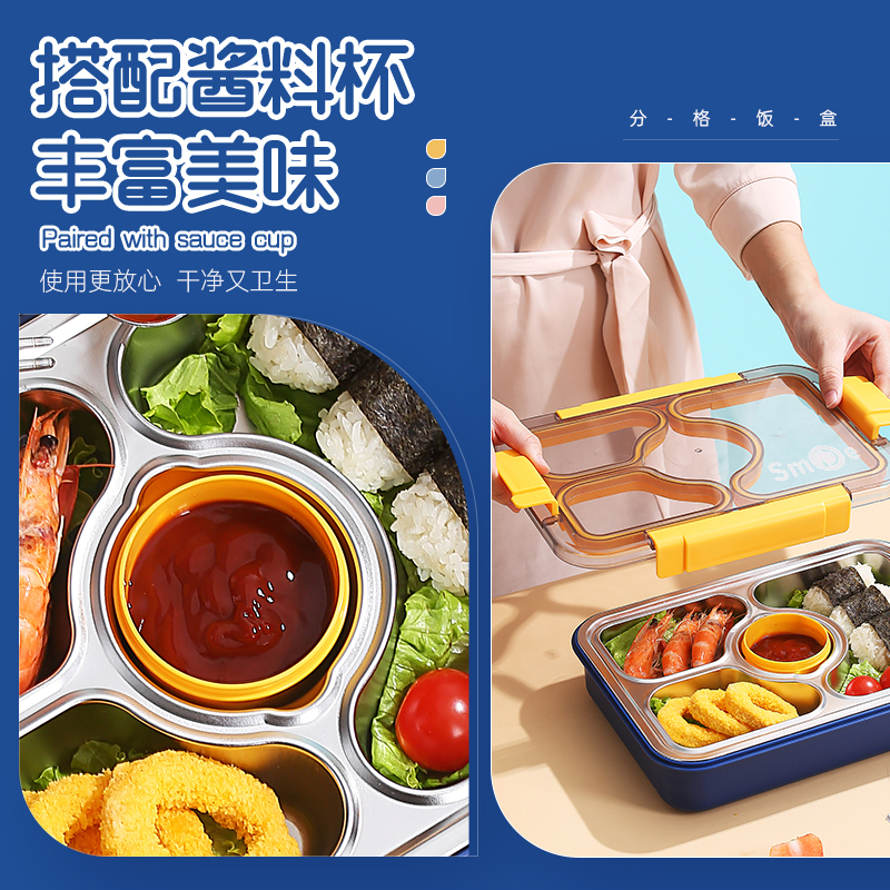 2561-950ml independent sealed stainless steel lunch box (3 compartments+PP bowl 80ml+stainless steel spoons and chopsticks)