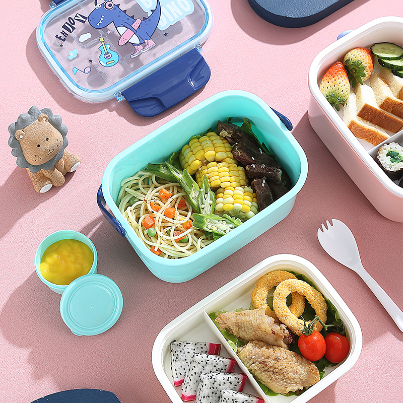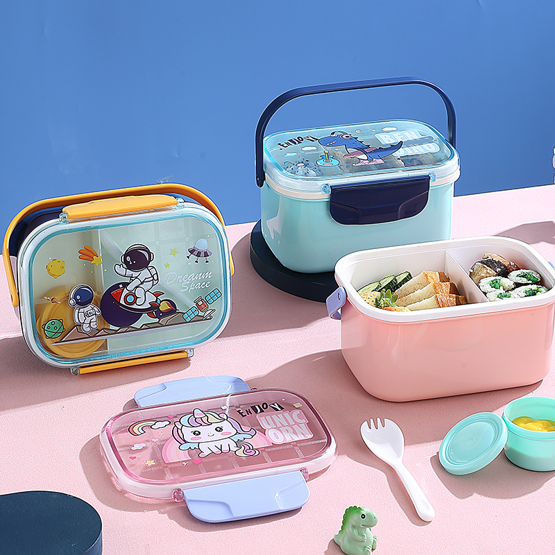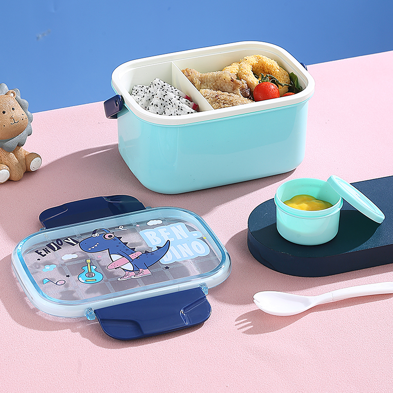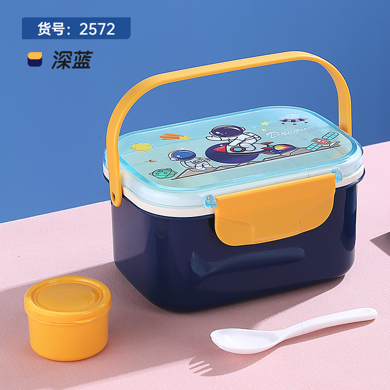 2572-Cute and Fun Sealed Handheld Double layered Meal Box (1600ml+Salad Cup 80ml+PP Spoon)