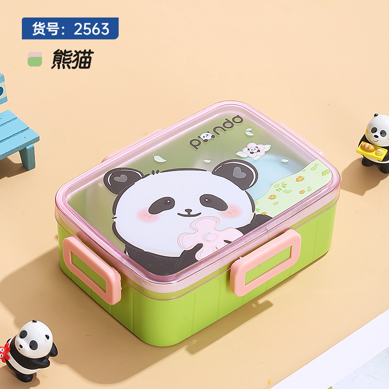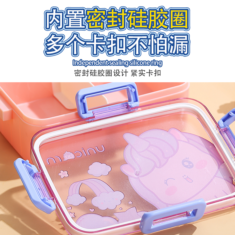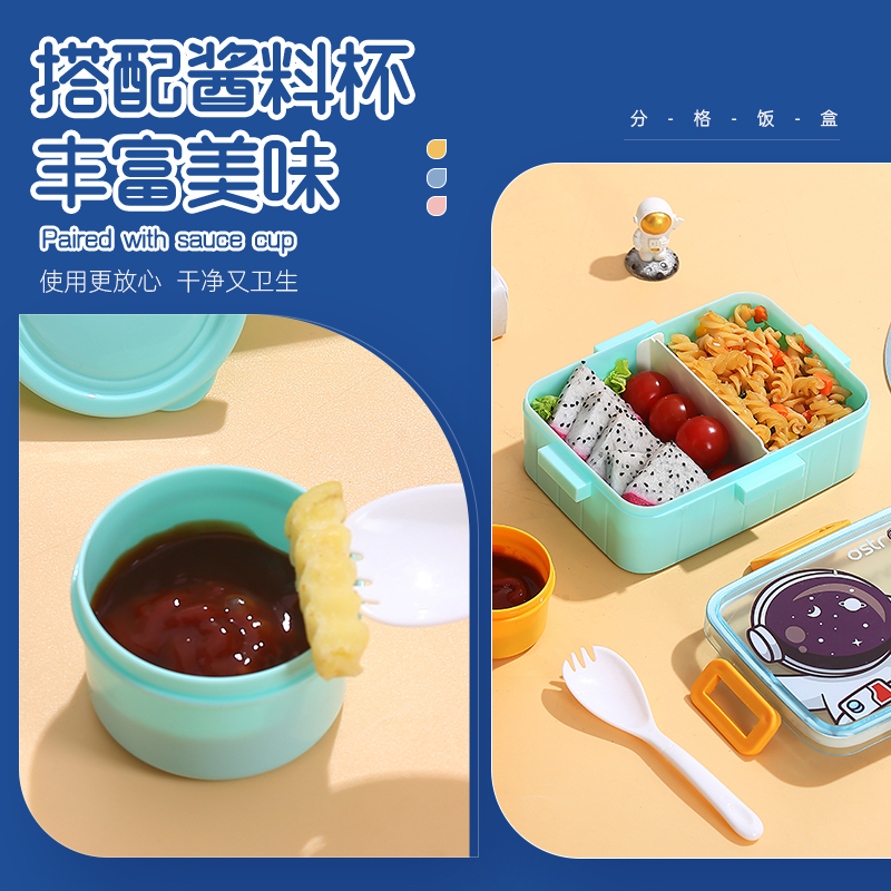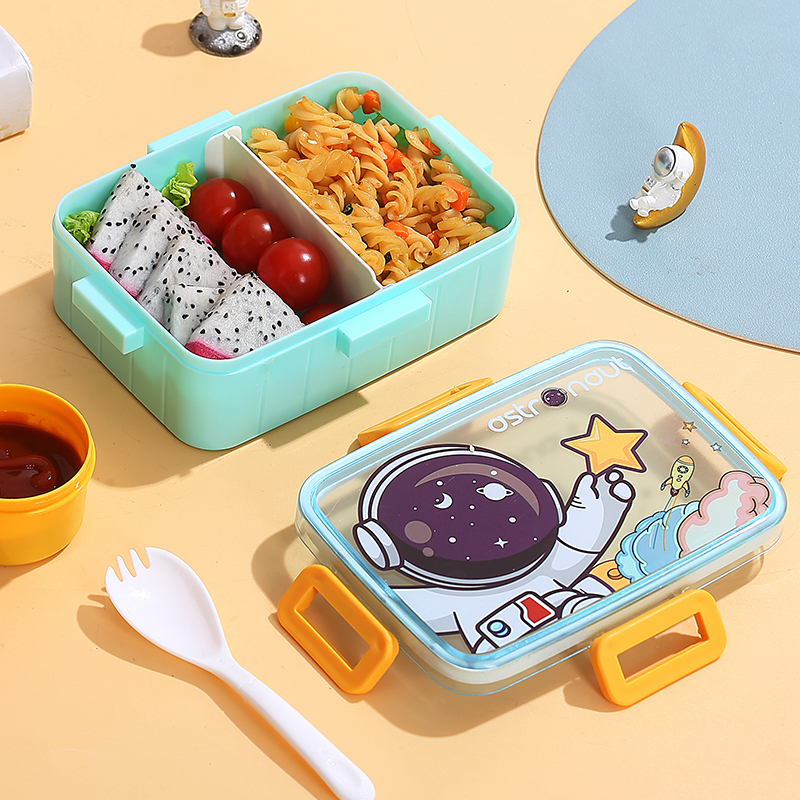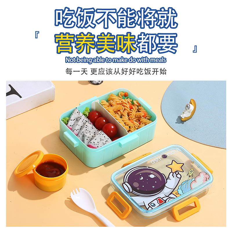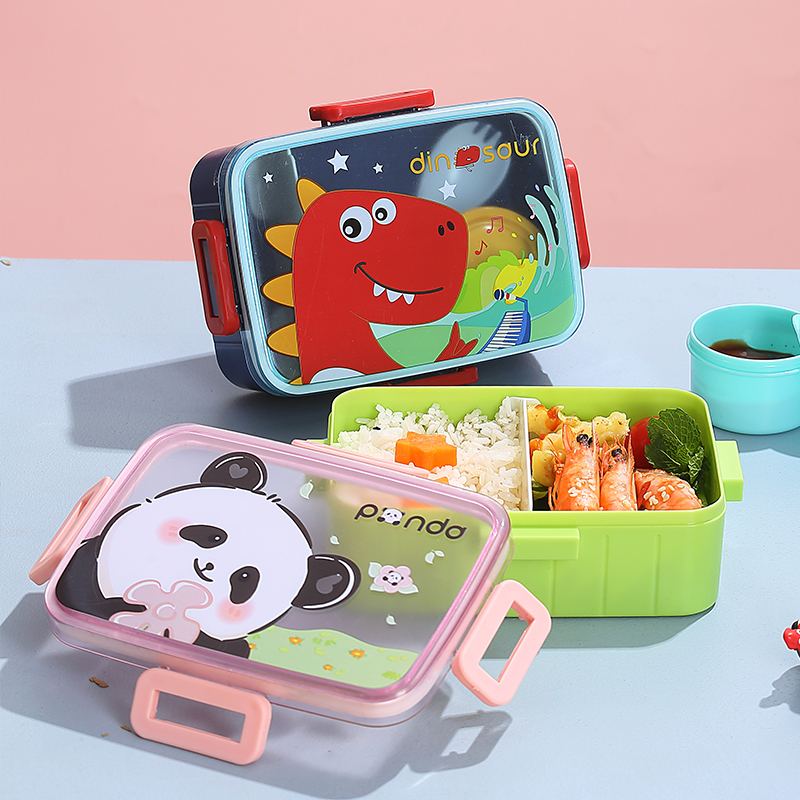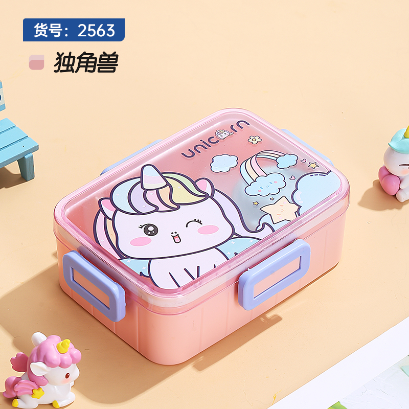 2573-Cute cartoon plastic lunch box (1 compartment 600ml+salad cup 80ml+PP spoon)