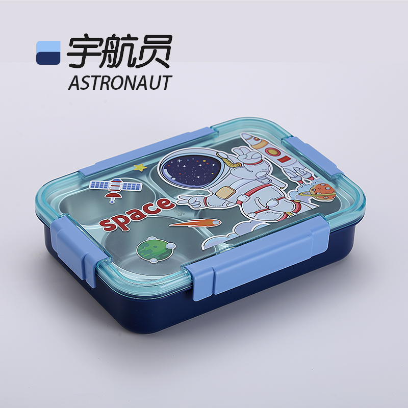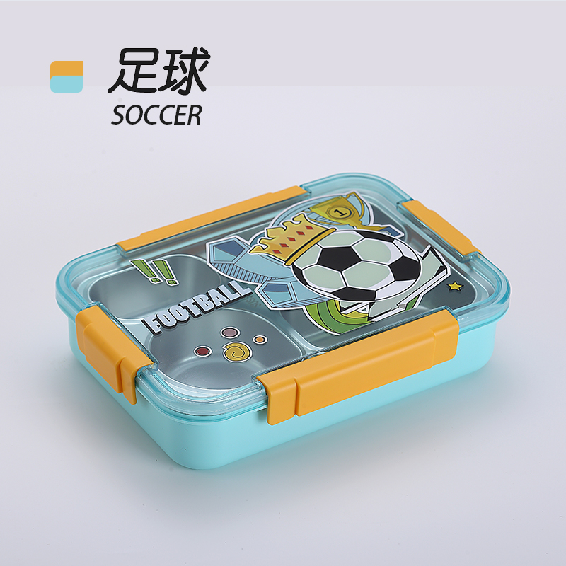 2587-Colorful cartoon sealed stainless steel lunch box (4 compartments 900ml+stainless steel chopsticks and spoons)