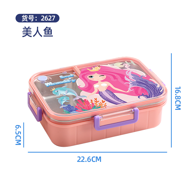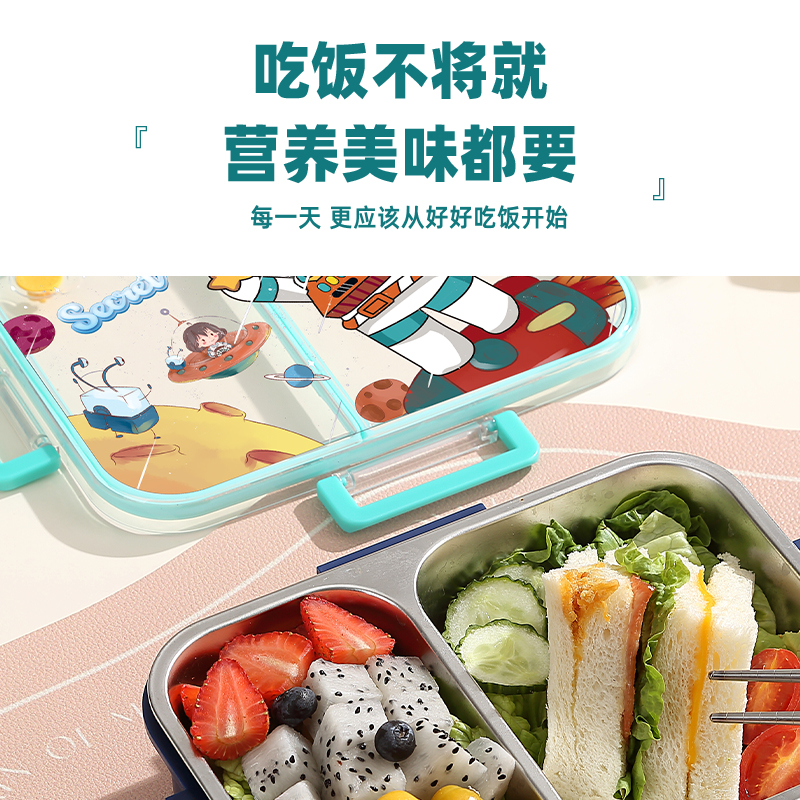 2627-Colorful cartoon leak-proof lunch box (stainless steel 2 compartments 800ml+sauce cup 80ml)