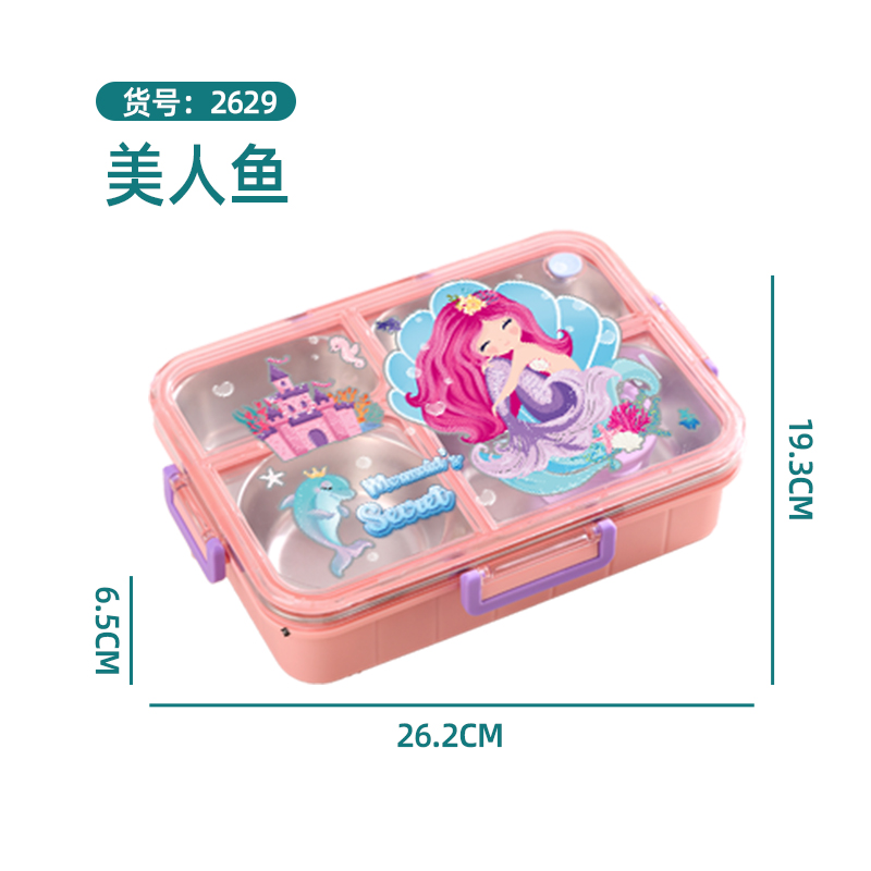 2629-Colorful cartoon leak-proof lunch box (stainless steel 4 compartments 900ml+sauce cup 80ml)