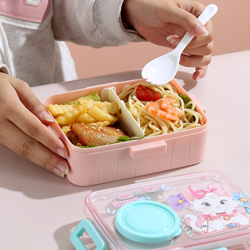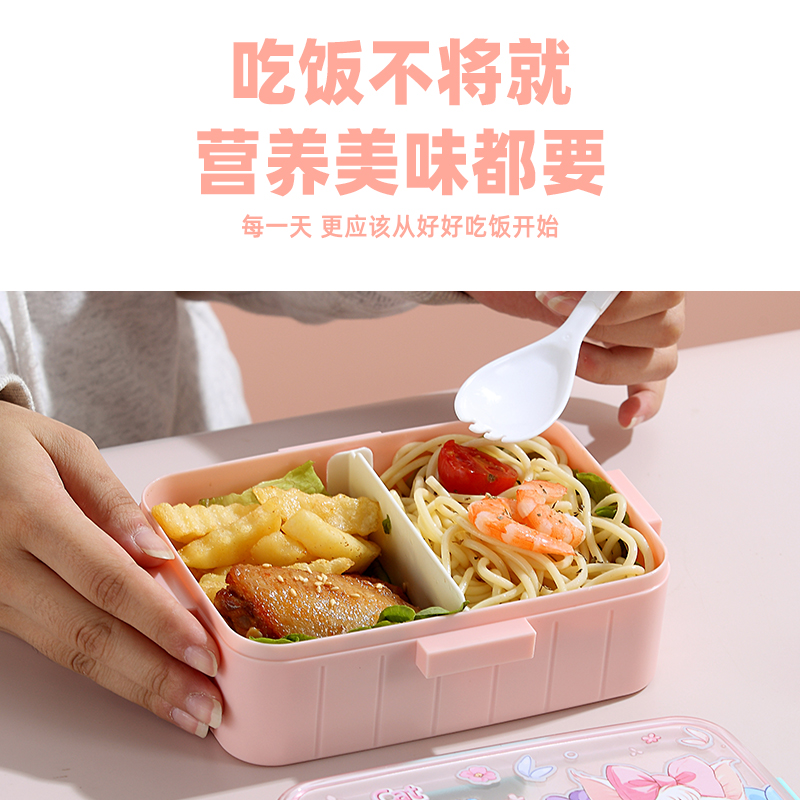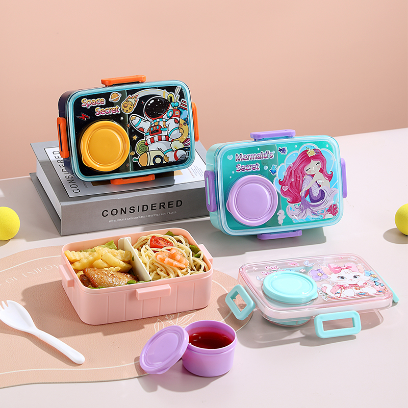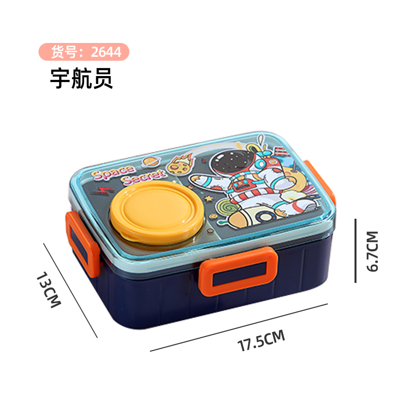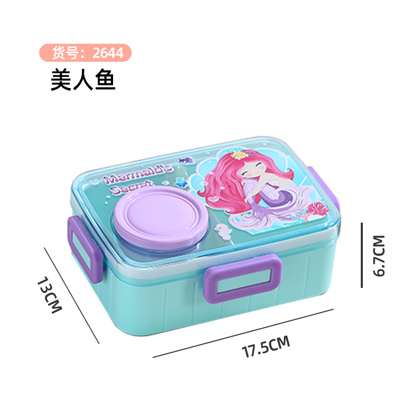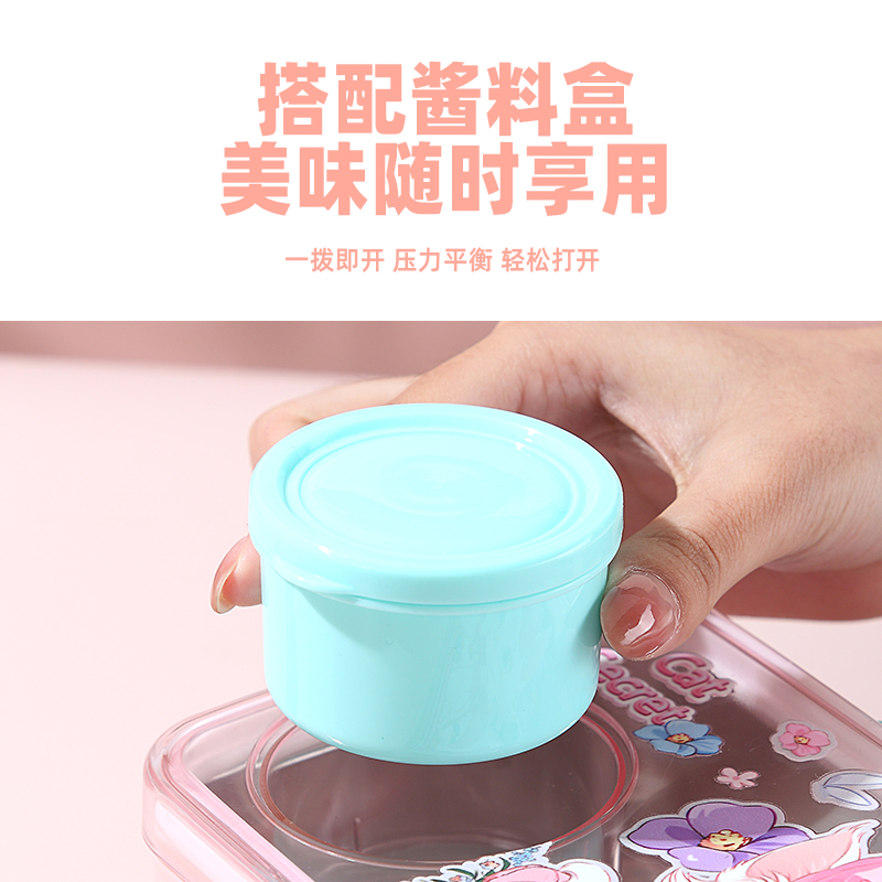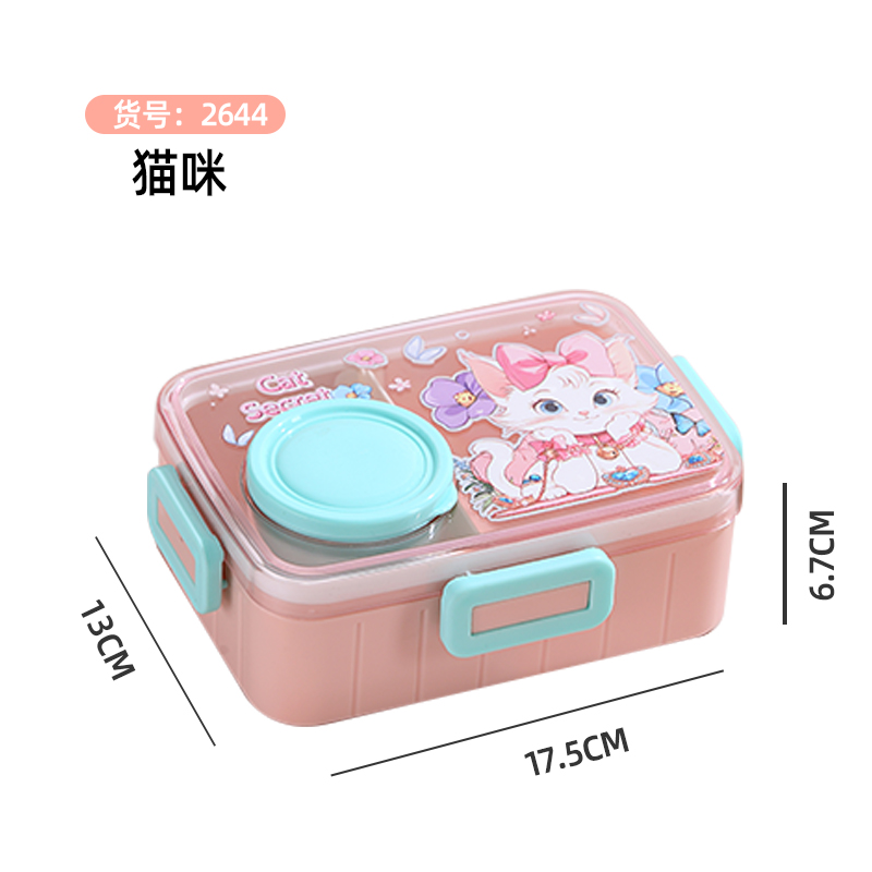 2644-Colorful cartoon sealed lunch box (single compartment 600ml+external sauce cup 80ml+PP spoon)