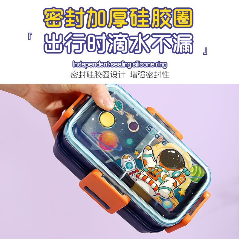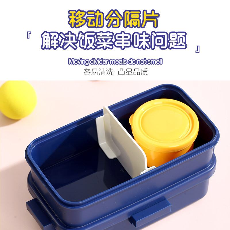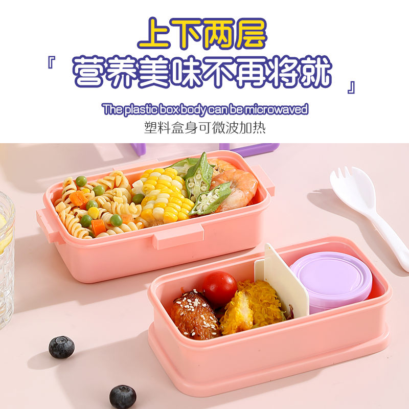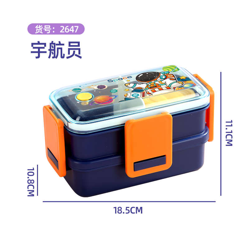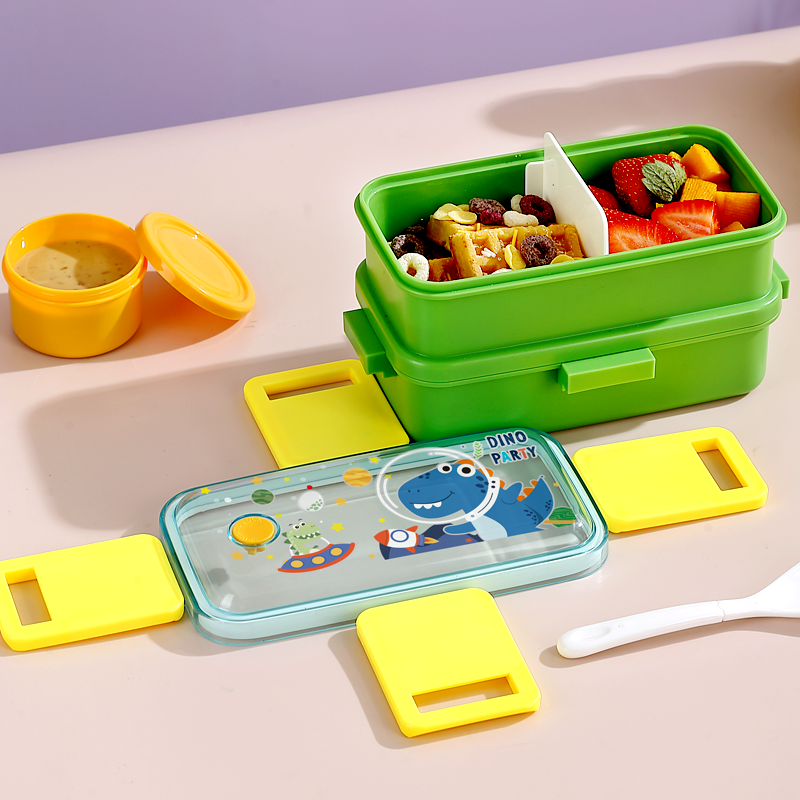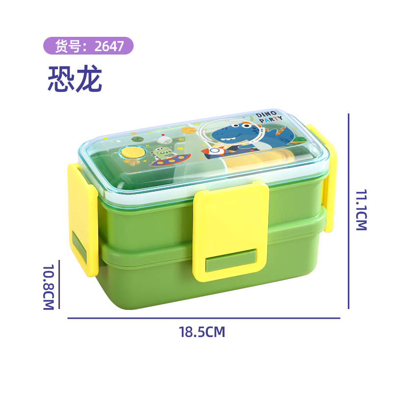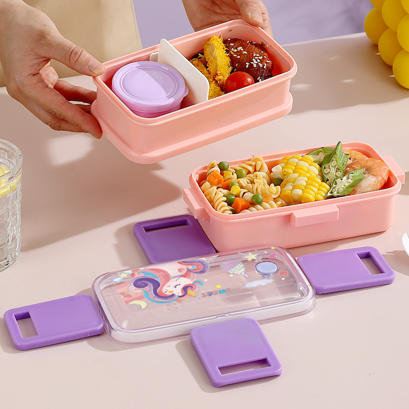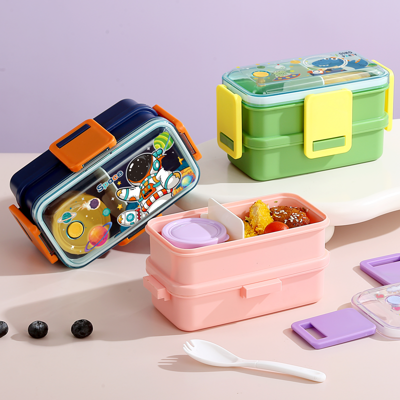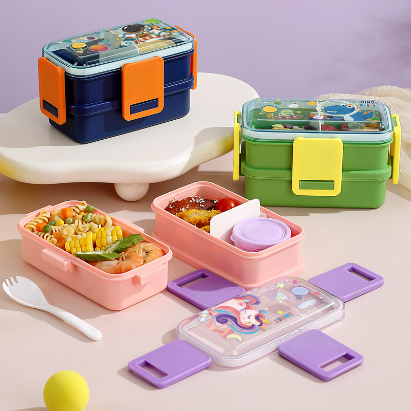 2647-Colorful cartoon double-layer plastic lunch box (500mlx2+sauce cup 80ml+PP spoon)