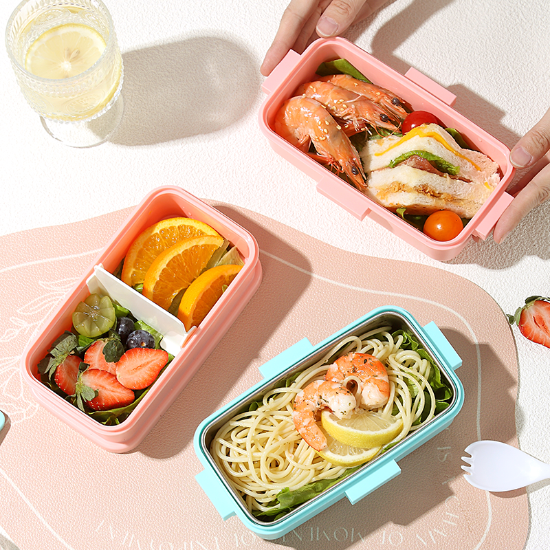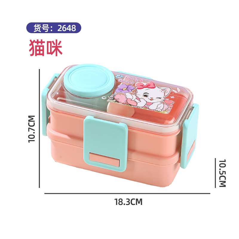 2648-Colorful cartoon double-layer plastic lunch box (500mlx2+external sauce cup 80ml)