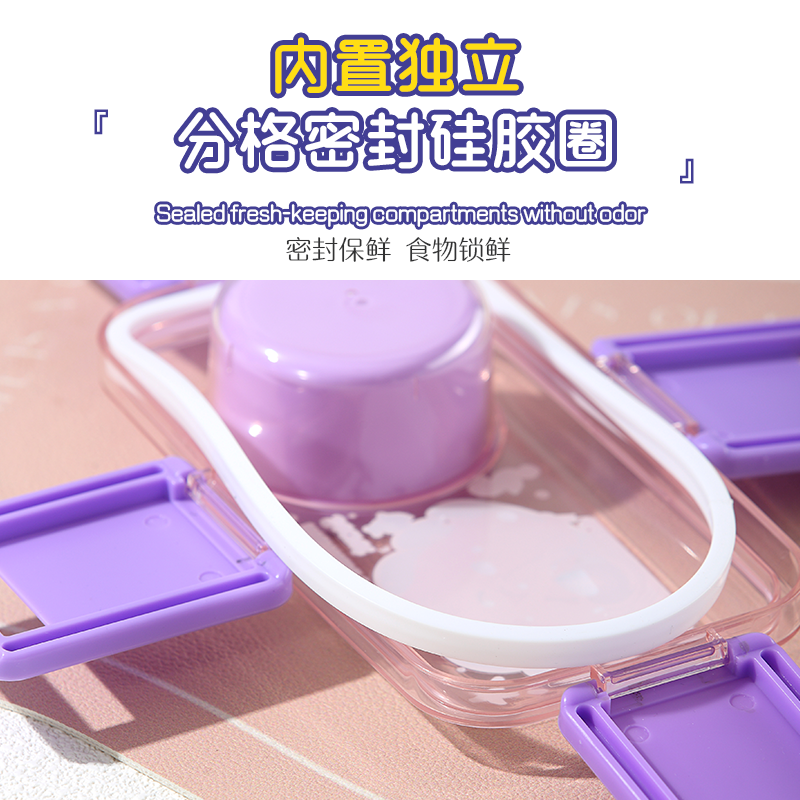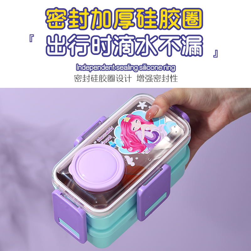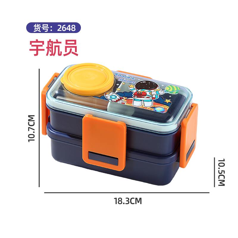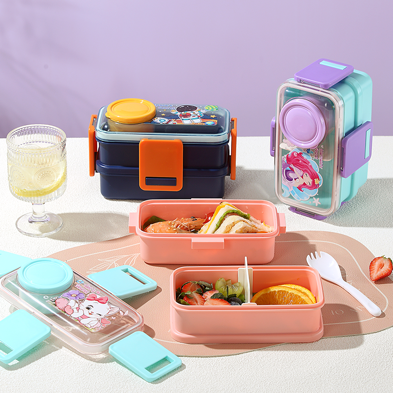 2650-Colorful cartoon double-layer plastic lunch box (700mlx2+external sauce cup 80ml+PP spoon)