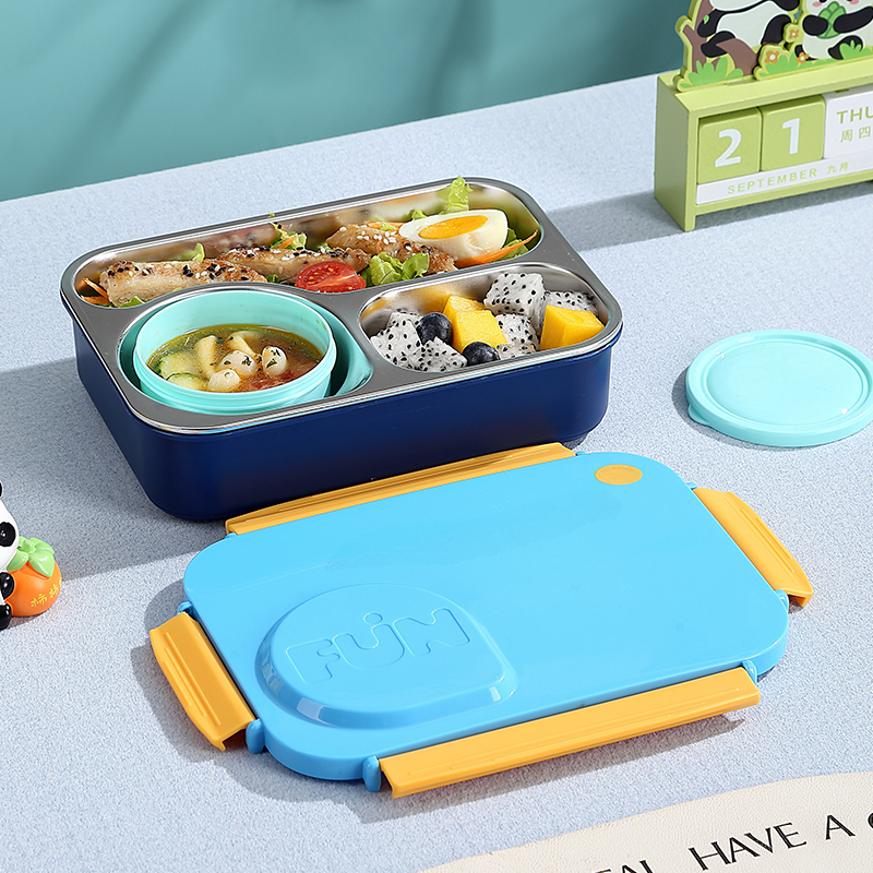 2655-FUN leak-proof lunch box (stainless steel 3 compartments 750ml+plastic bowl 150ml+stainless steel spoons and chopsticks)
