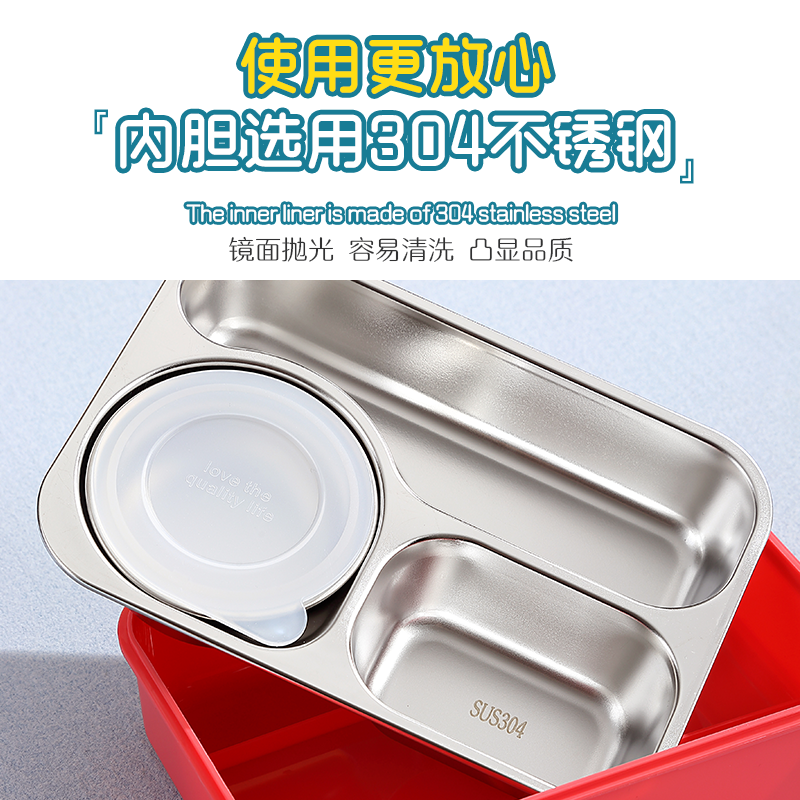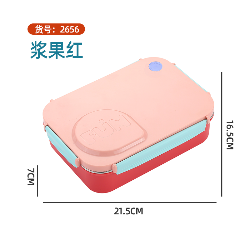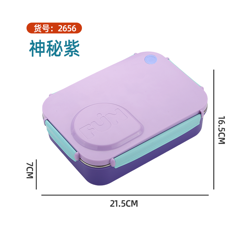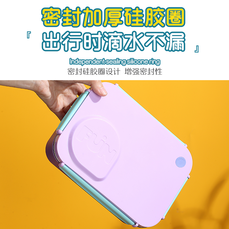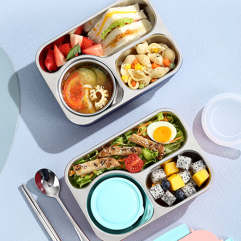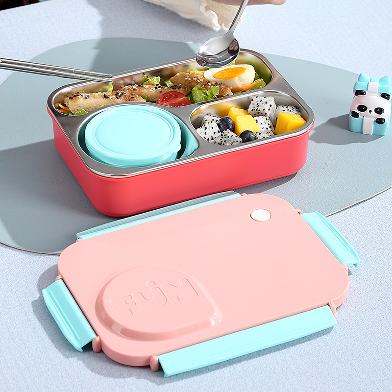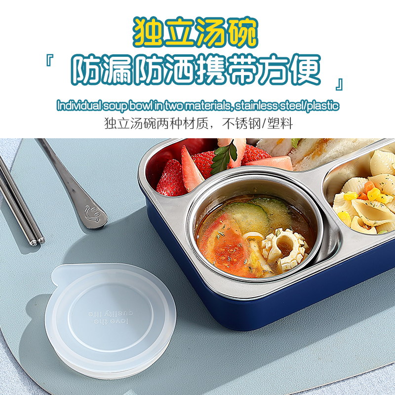 2656-FUN leak-proof lunch box (stainless steel 3 compartments 750ml+stainless steel bowl 150ml+stainless steel spoons and chopsticks)