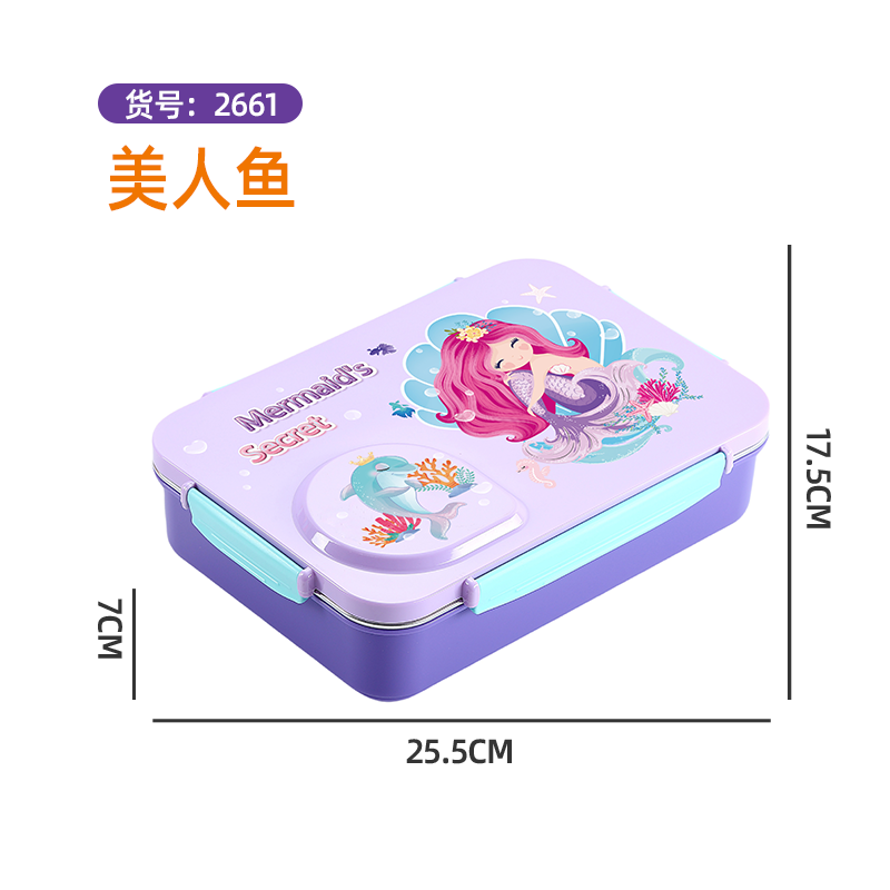 2661-UV printed cartoon leak-proof lunch box (stainless steel 4 grids 900ml+plastic bowl 150ml+stainless steel spoons and chopsticks)
