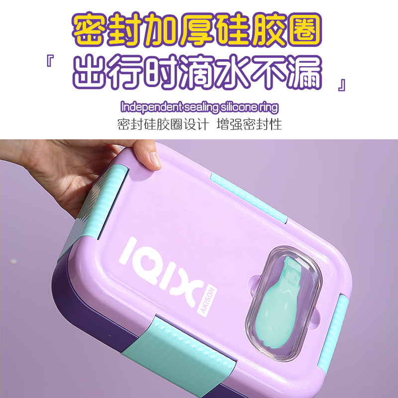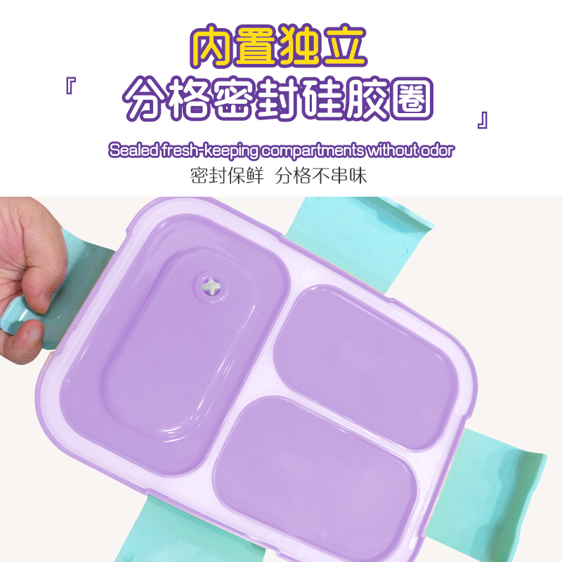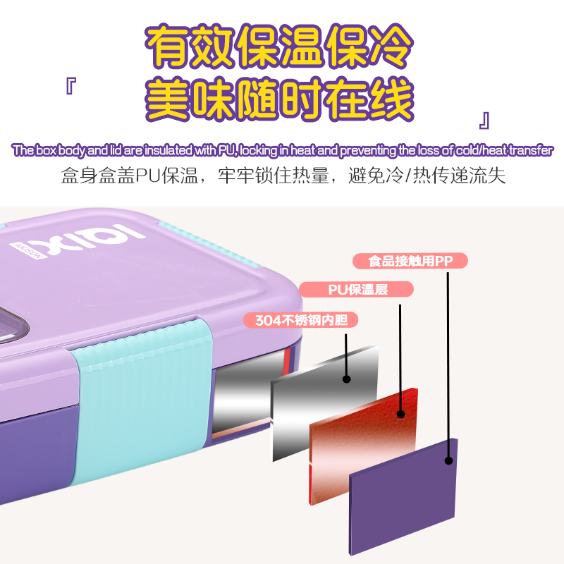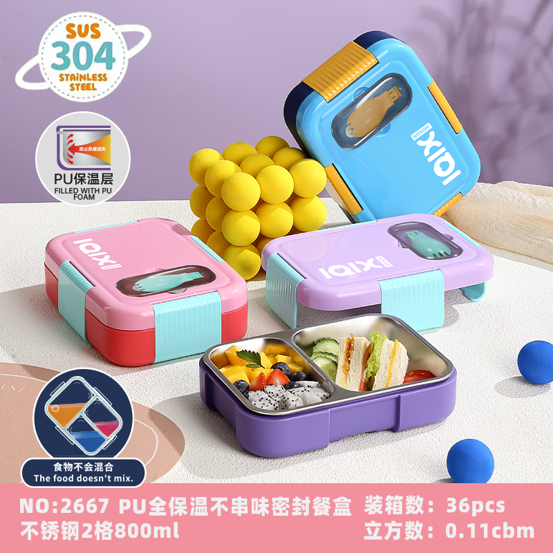 2667-PU All-insulated, food not mix lunch box (SUS304- 2 compartments,800ml + PP folding spoon)