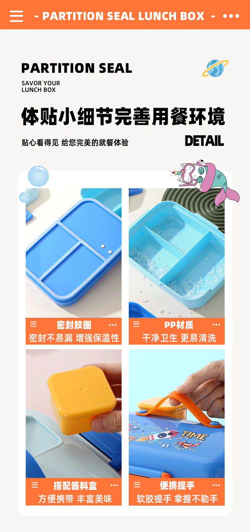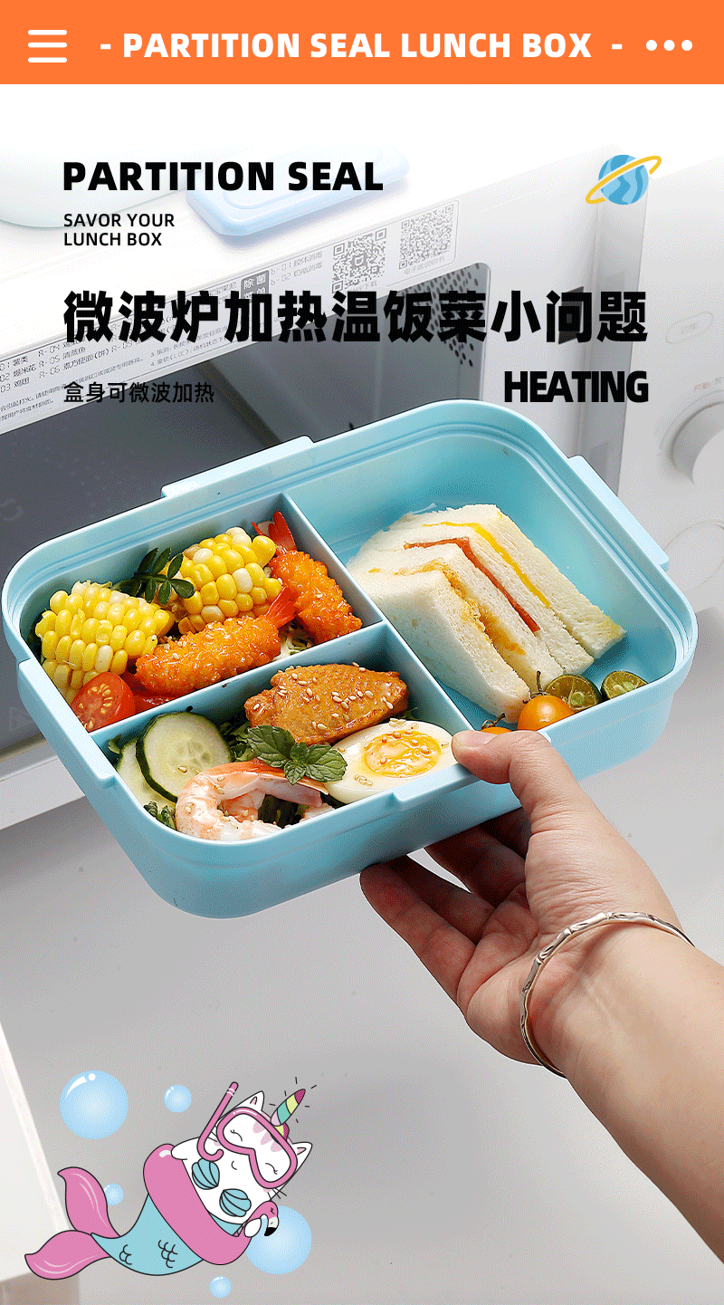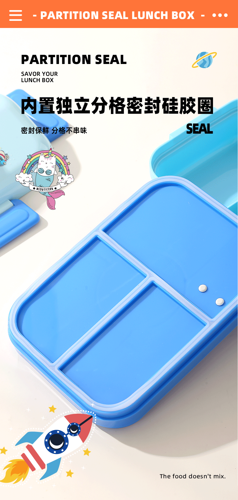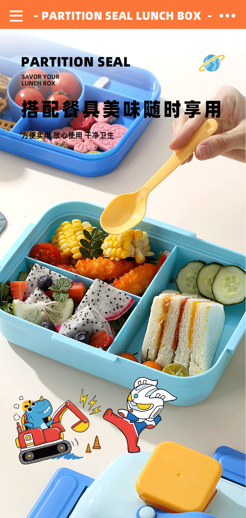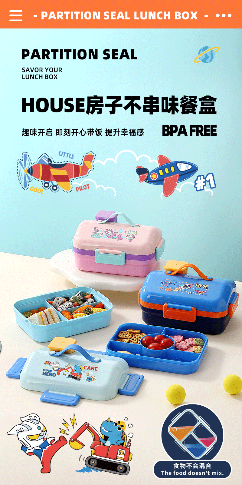 2691-FOOD NOT MIX HOUSE lunch box (3 GRID 1270ml+bowl 70ml+PP SPOON)