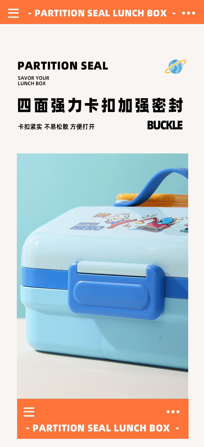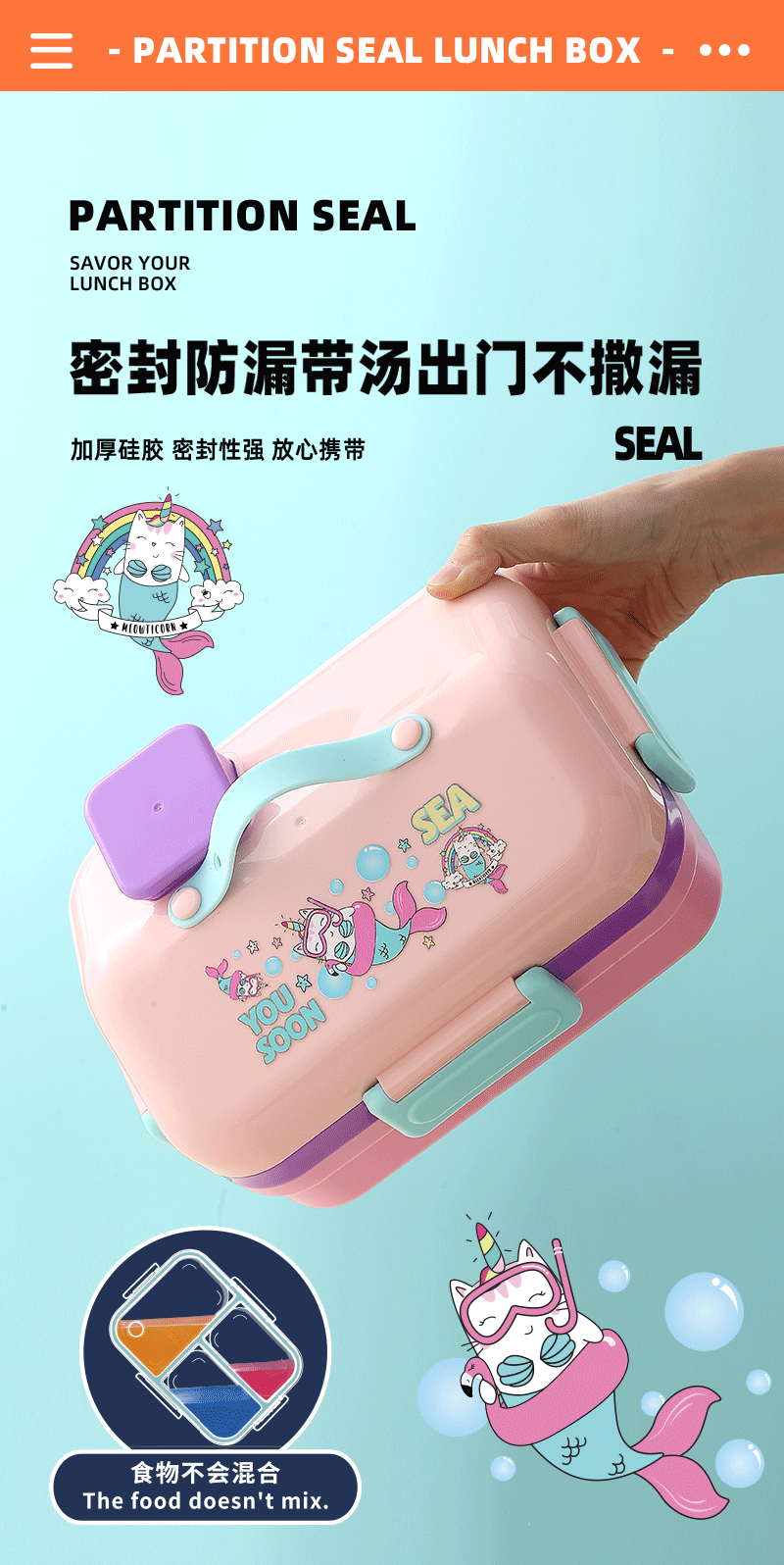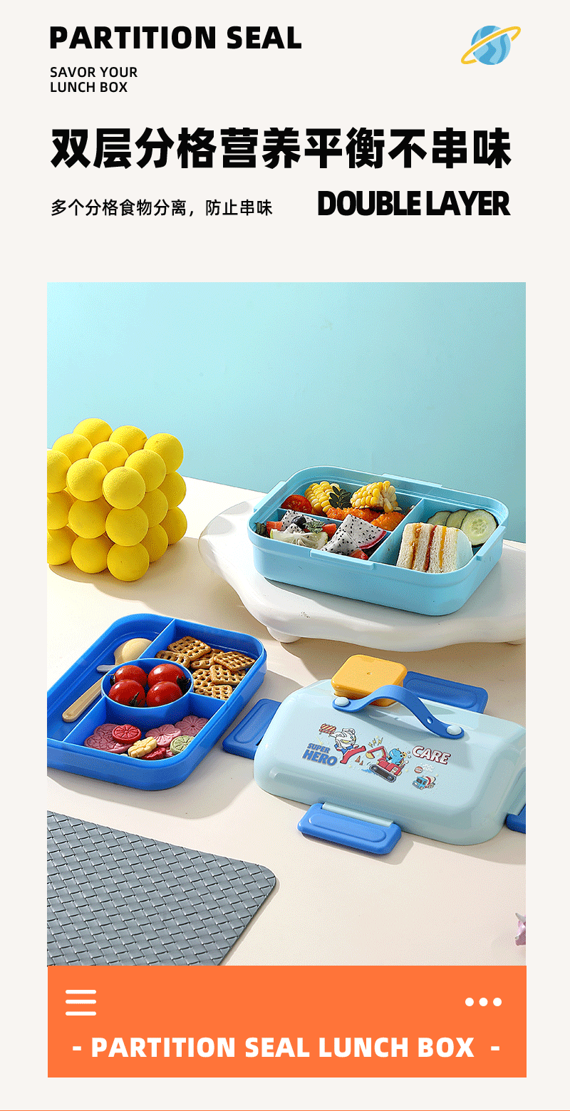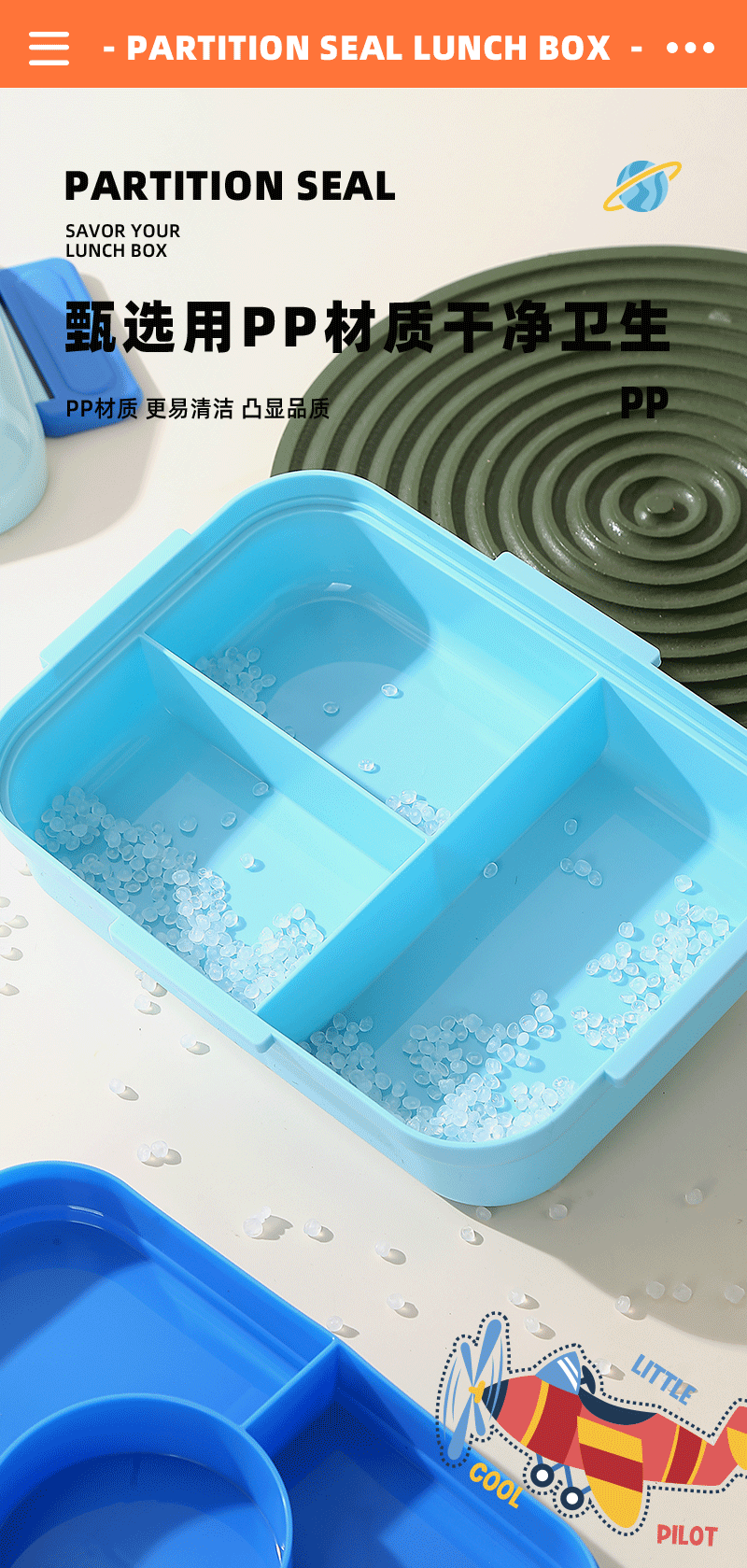 2691-FOOD NOT MIX HOUSE lunch box (3 GRID 1270ml+bowl 70ml+PP SPOON)