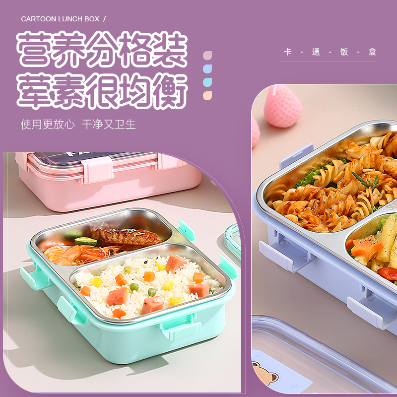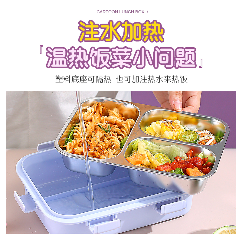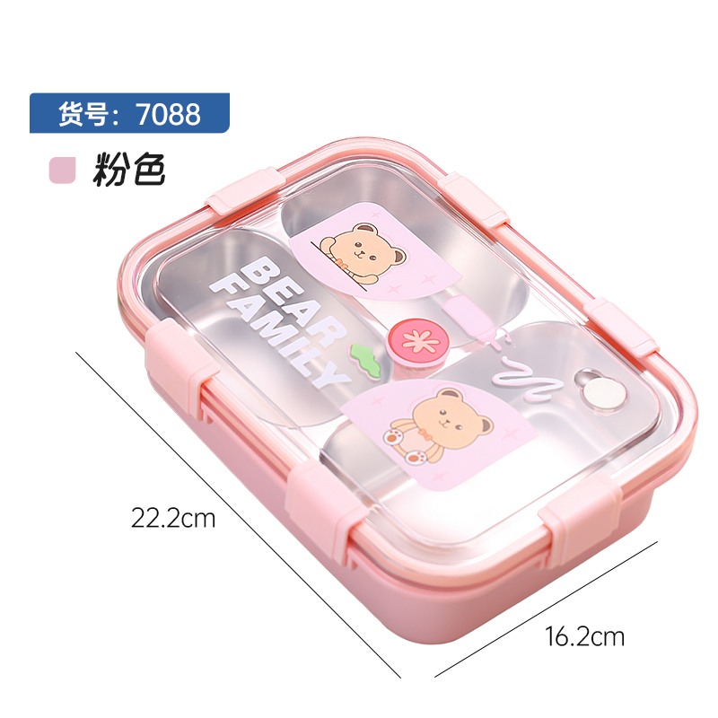 7088-Cartoon Bear 304 Stainless Steel Lunch Box (Three Grid 750ml)