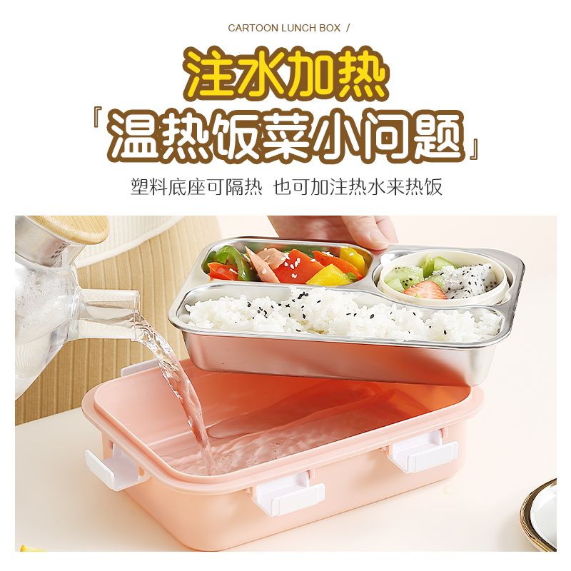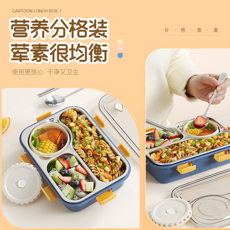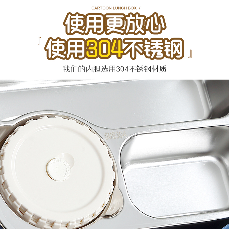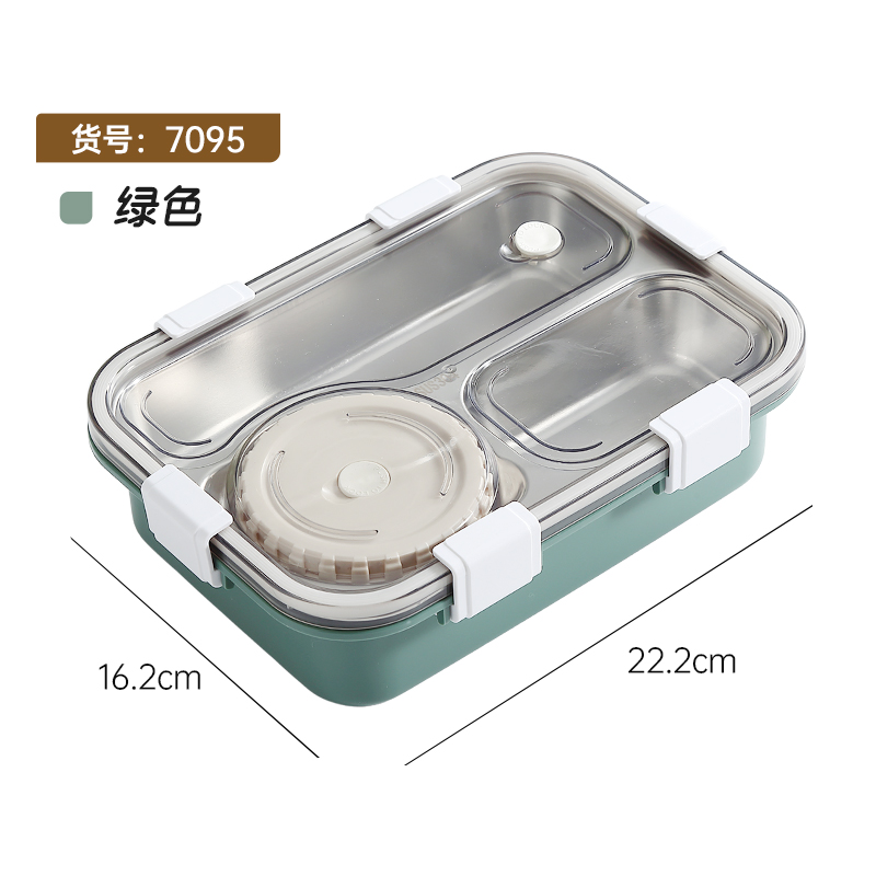 7095-304 stainless steel lunch box (three compartments+bowl 700ml+150ml)