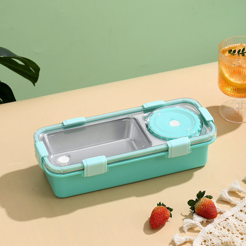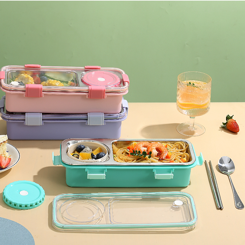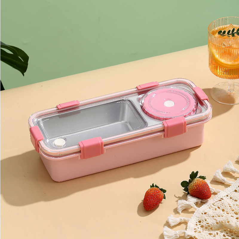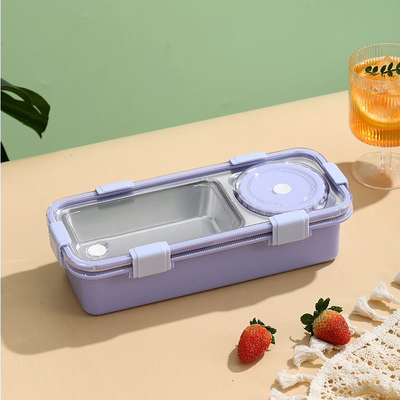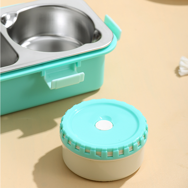 7106-Light food stainless steel lunch box with two compartments and bowl 600ml+150nl