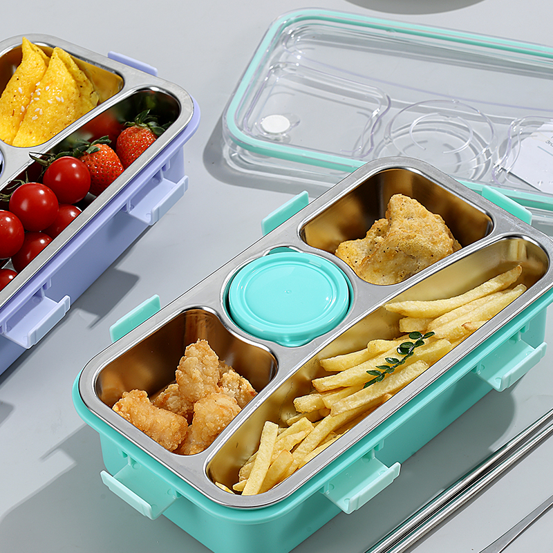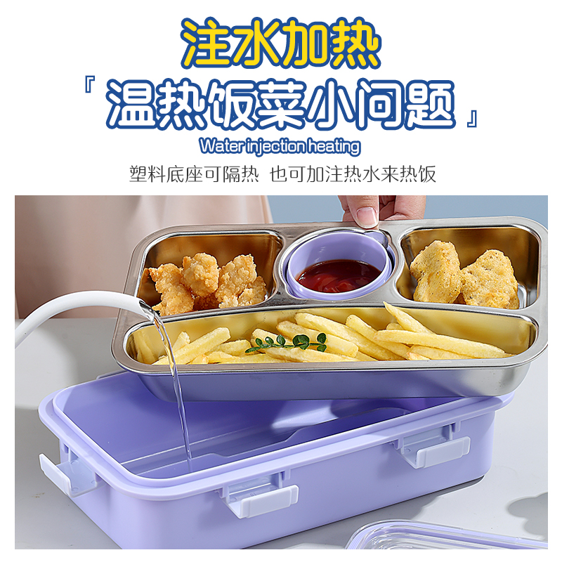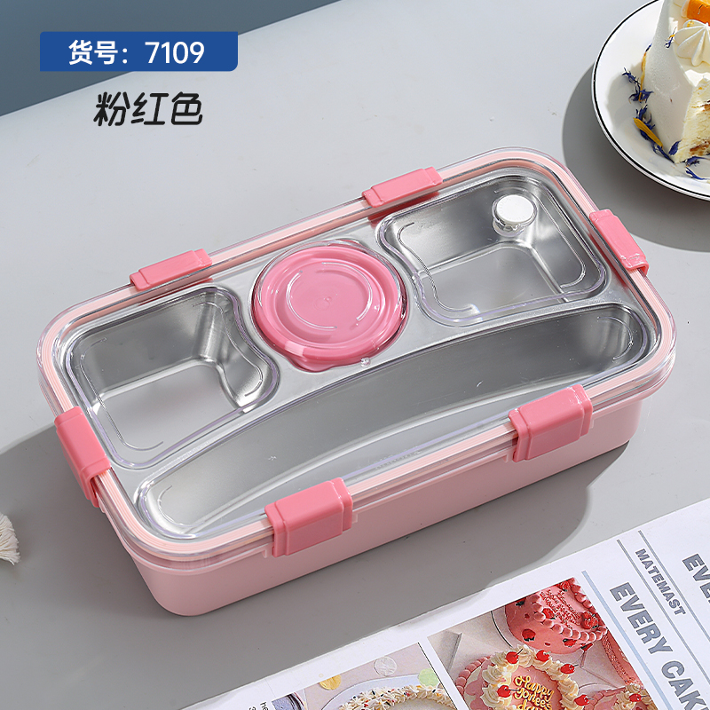 7109-Light food stainless steel lunch box with four compartments and small bowl 650ml+70ml