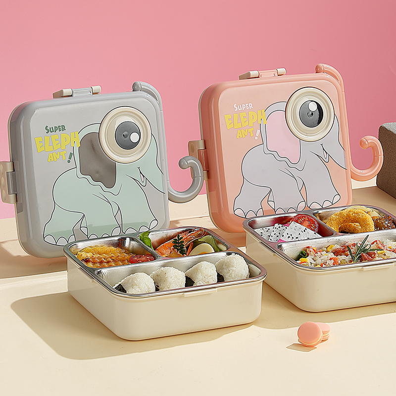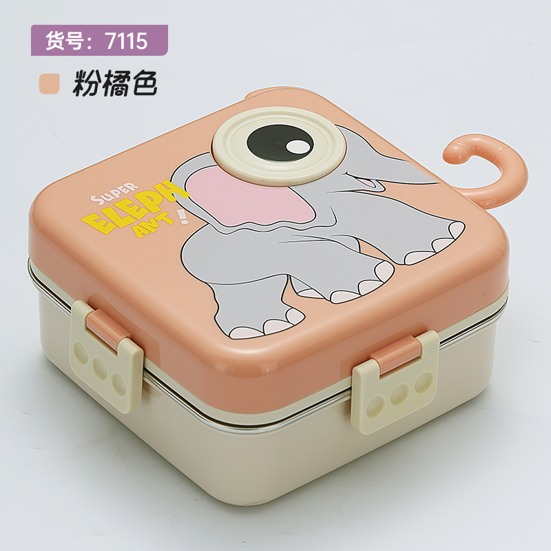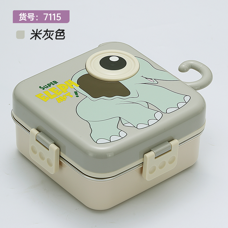 7115-Elephant Square Stainless Steel Lunch Box 1120ml+70ml