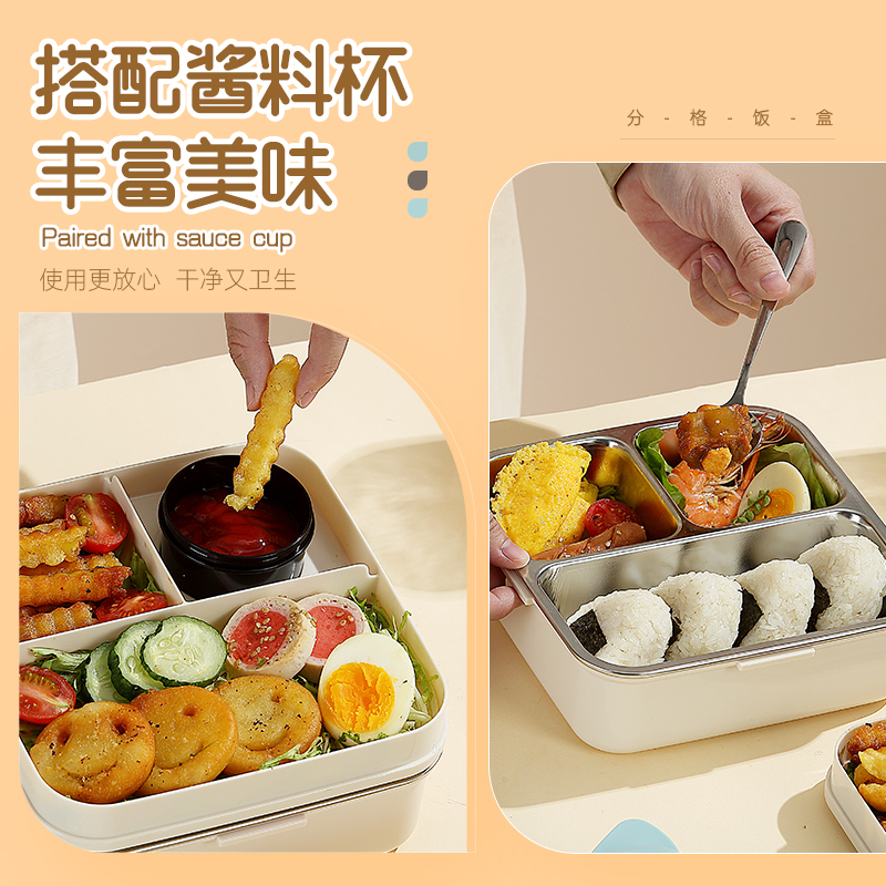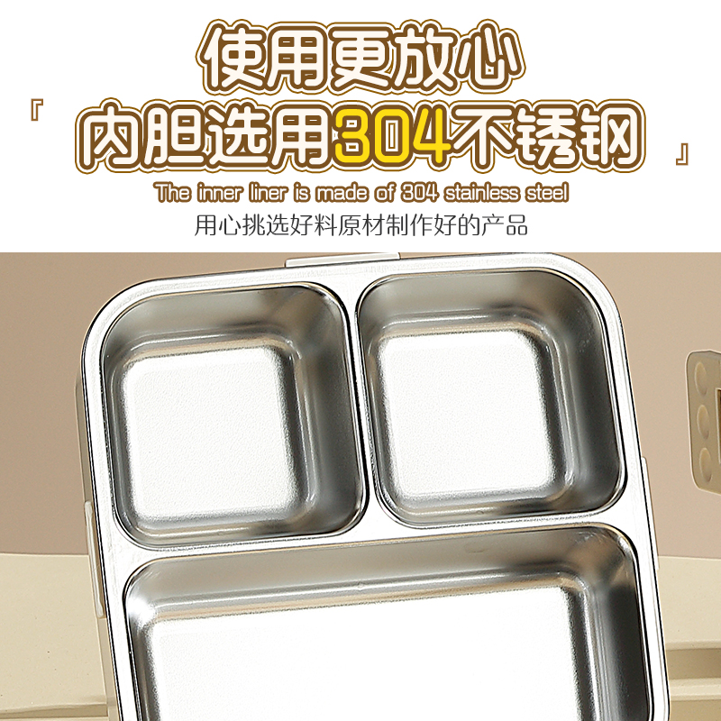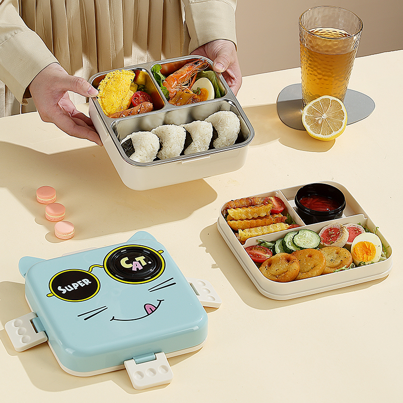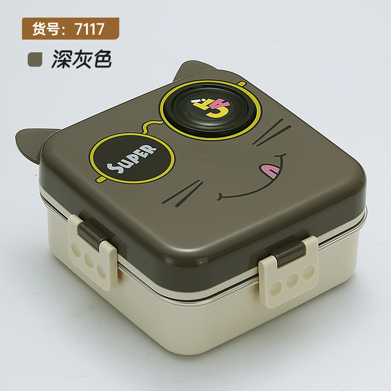 7117-Kitten Square Stainless Steel Lunch Box 1120ml+70ml