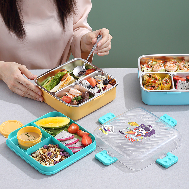 7118A-Cartoon square stainless steel lunch box 1120ml+70ml
