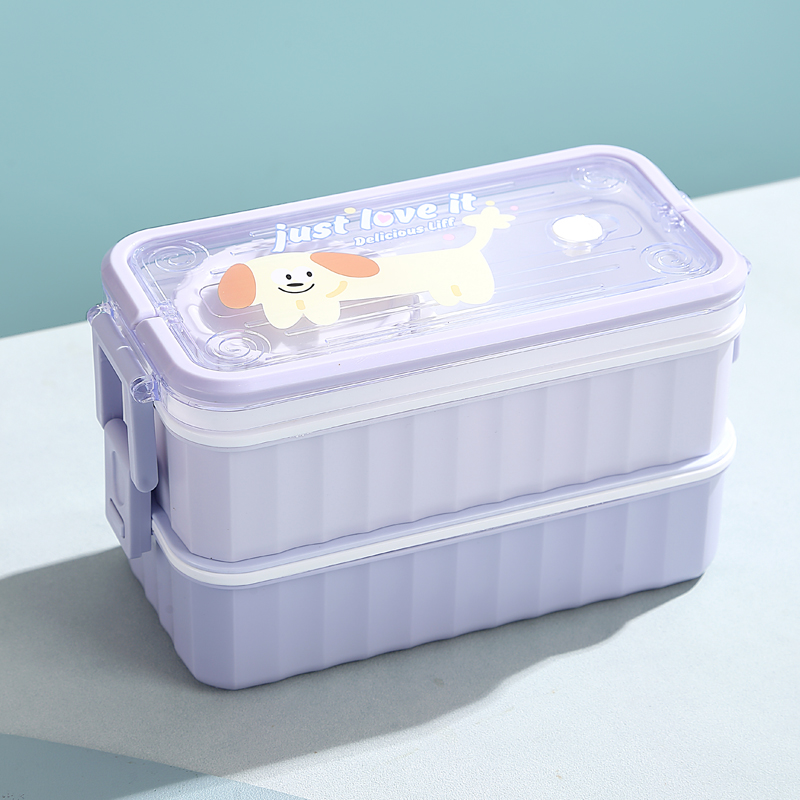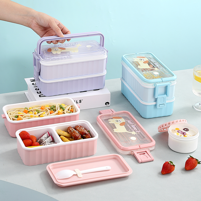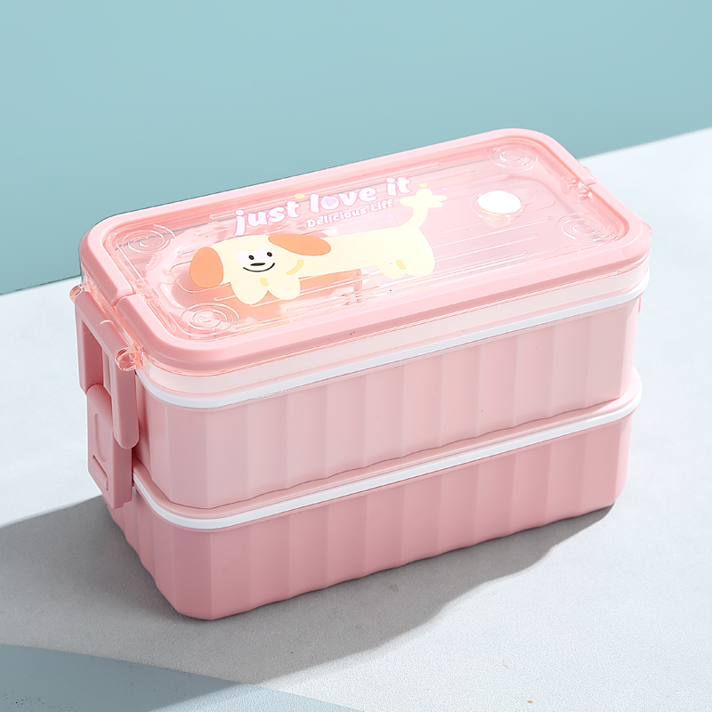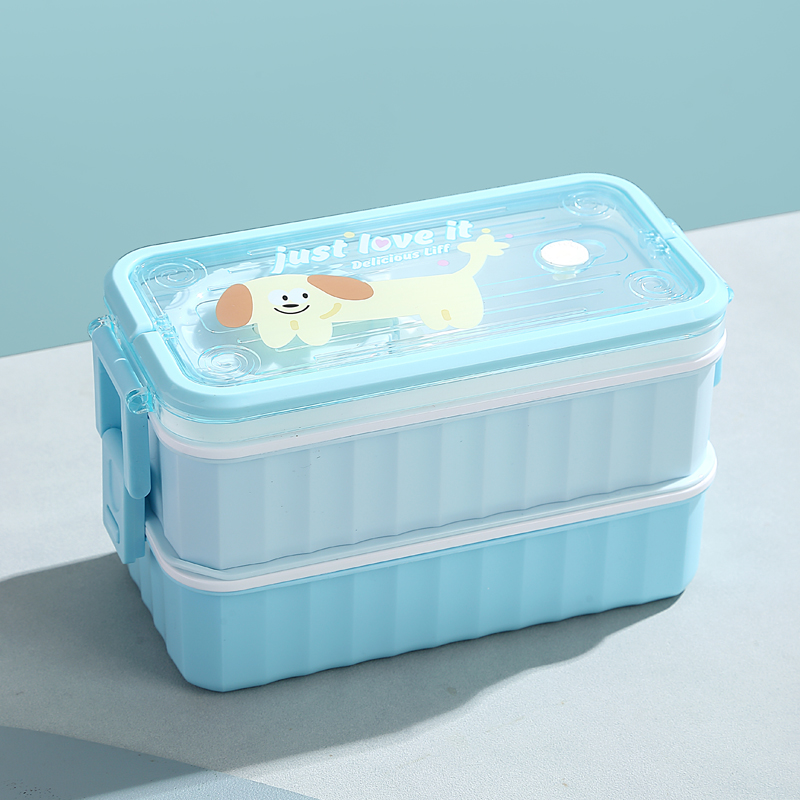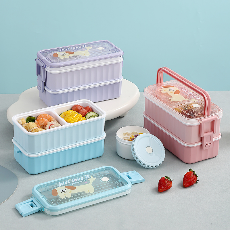 7127-Cartoon handheld double-layer plastic lunch box 1360ml+200ml