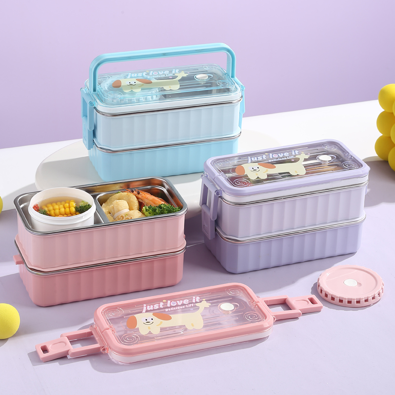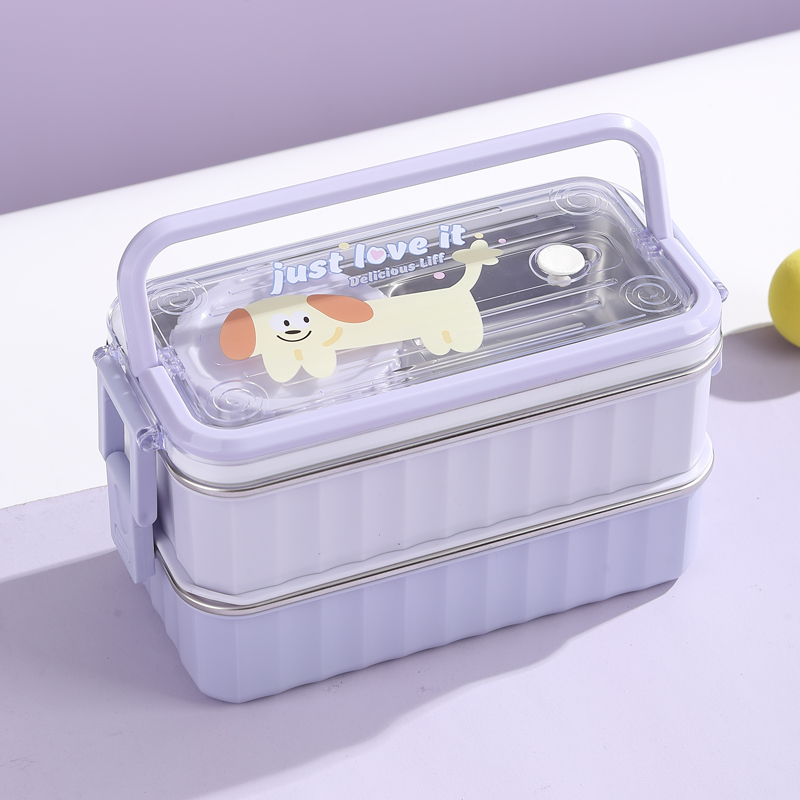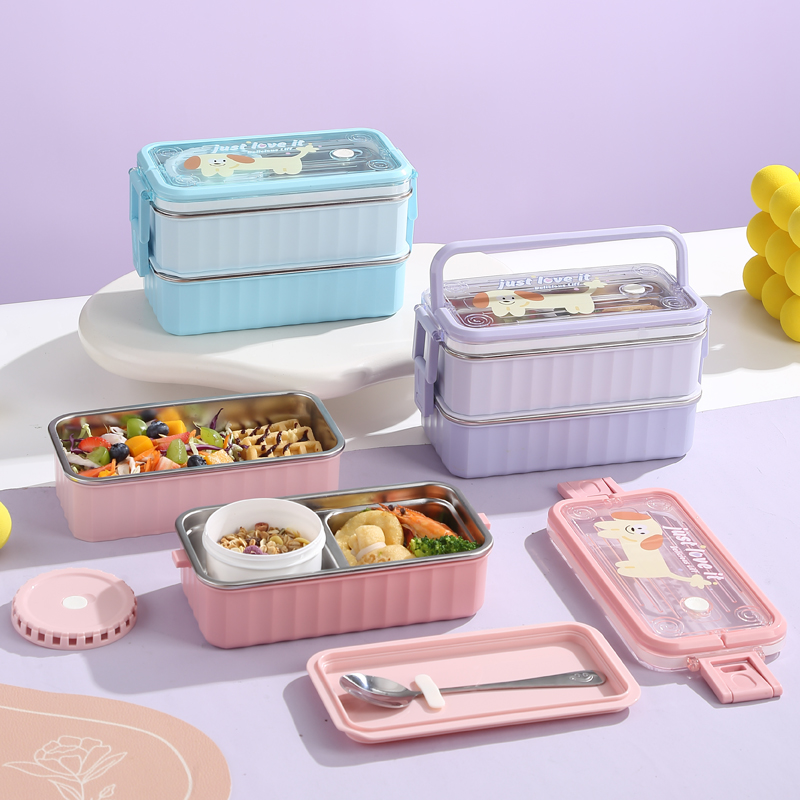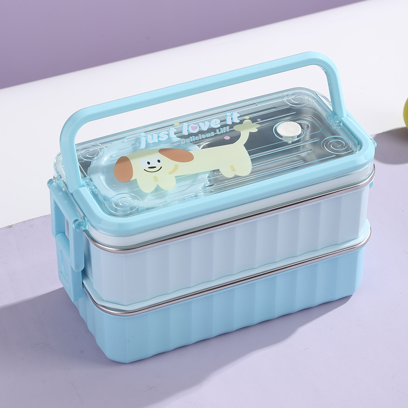 7129-Cartoon handheld double-layer stainless steel lunch box 1250ml+200ml