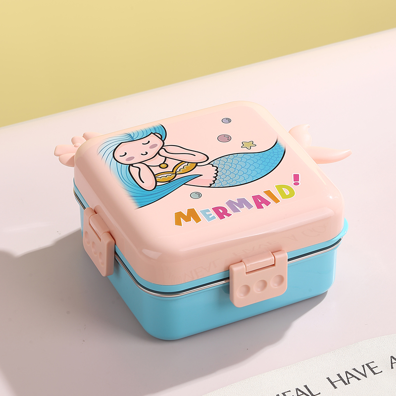 7151-Mermaid Square Stainless Steel Meal Box 1120ml+70ml