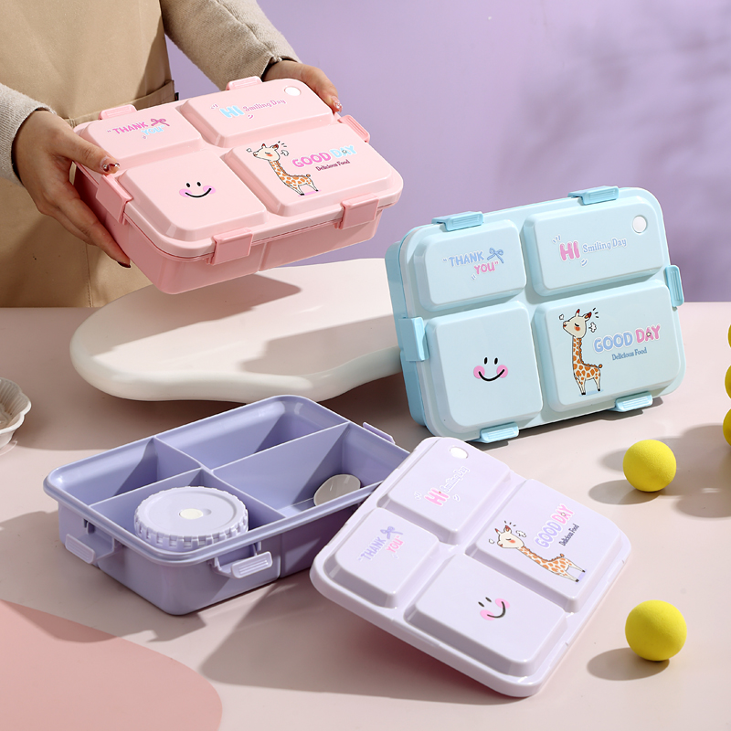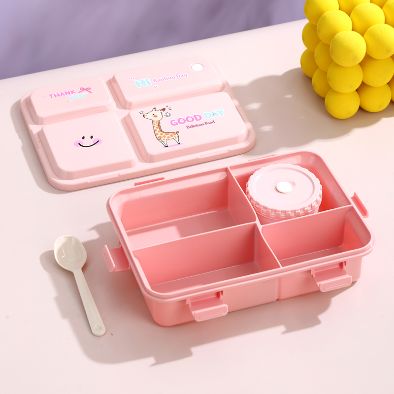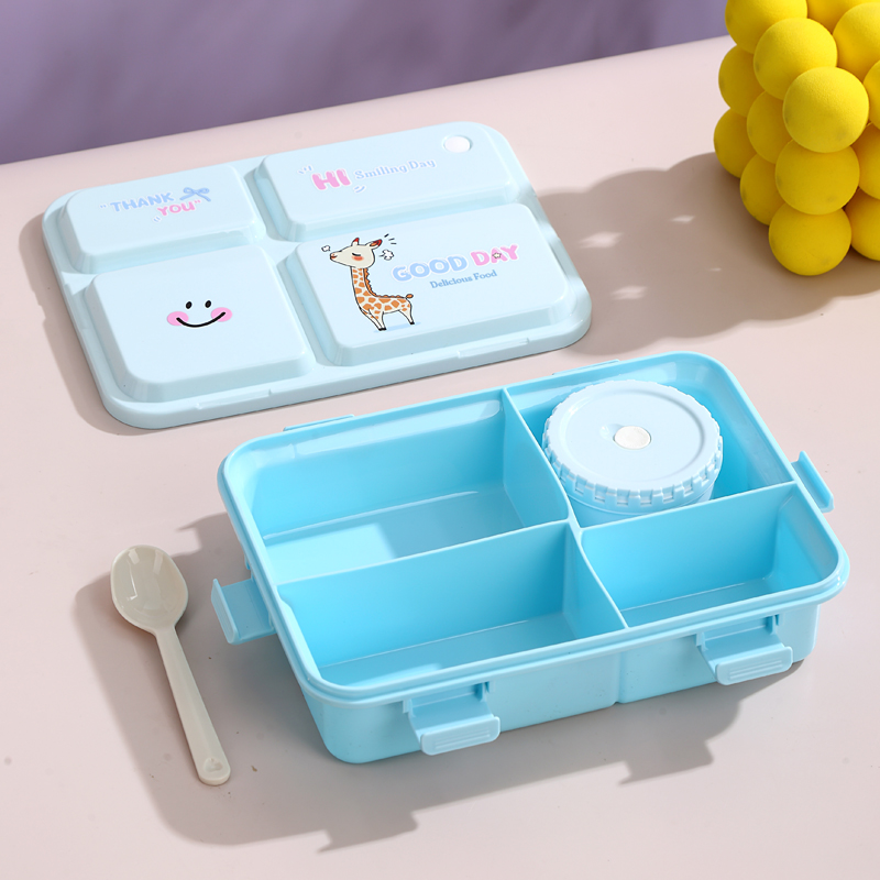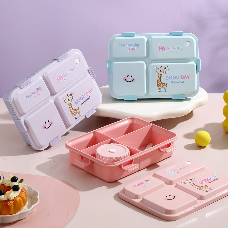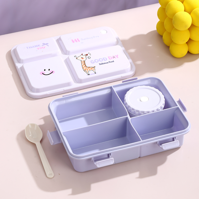 7154-UV printed individual sealed leak-proof plastic four grid bowl lunch box (1780+200ml)