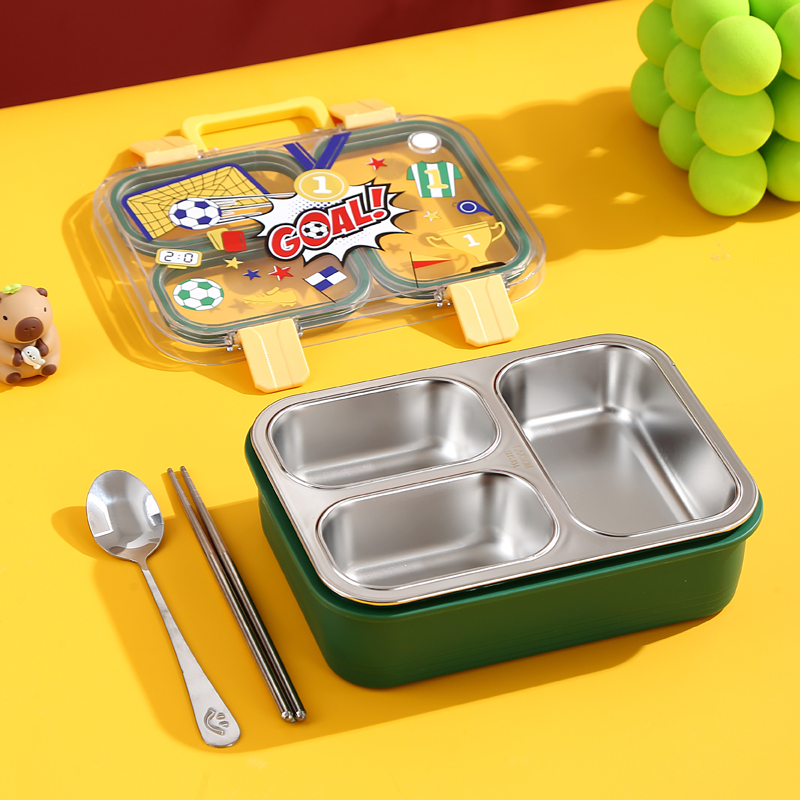 7156-UV printed backpack with individual sealed leak-proof three compartment stainless steel lunch box (700ml)