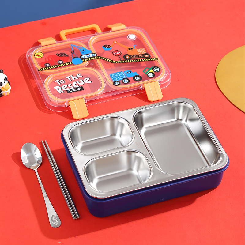 7157-UV printed backpack with individual leak-proof sealed three compartment stainless steel lunch box (850ml)