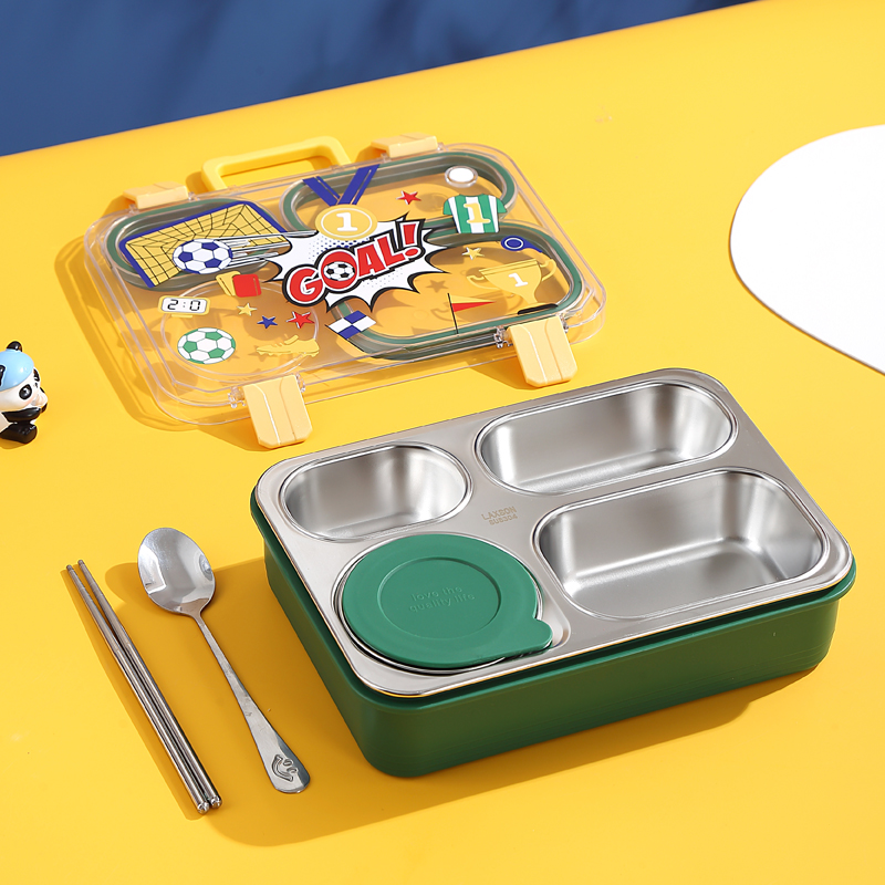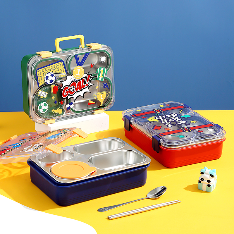 7158-UV printed backpack with individual sealed leak-proof four compartment stainless steel lunch box with bowl (800+150ml)