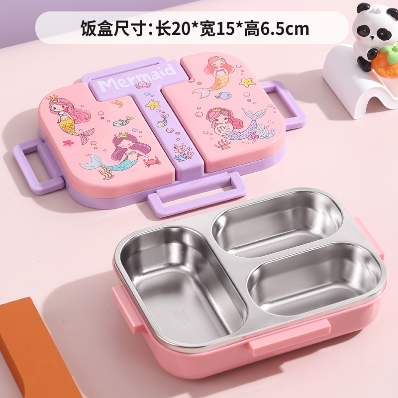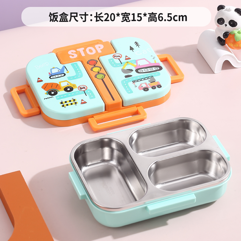 7160-600ml independent sealed children’s fun stainless steel dining box with 3 compartments (equipped with PP folding spoon)