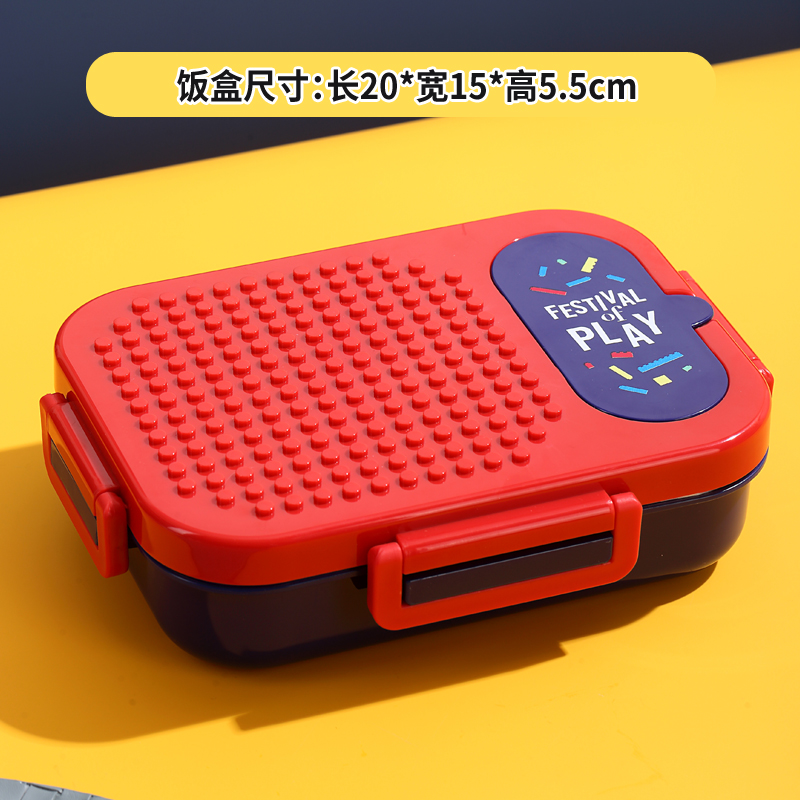 7161-600ml independent sealed building block stainless steel lunch box with 2 compartments (equipped with PP folding spoon)