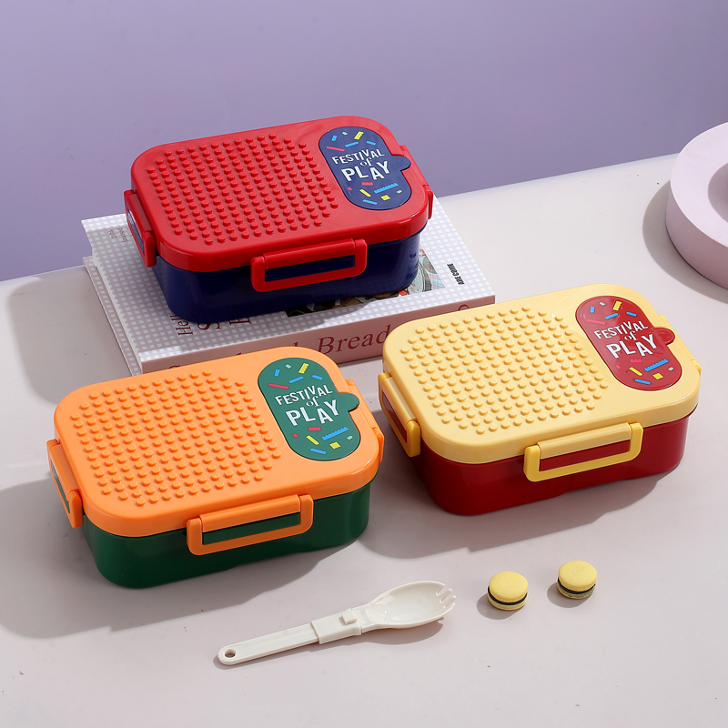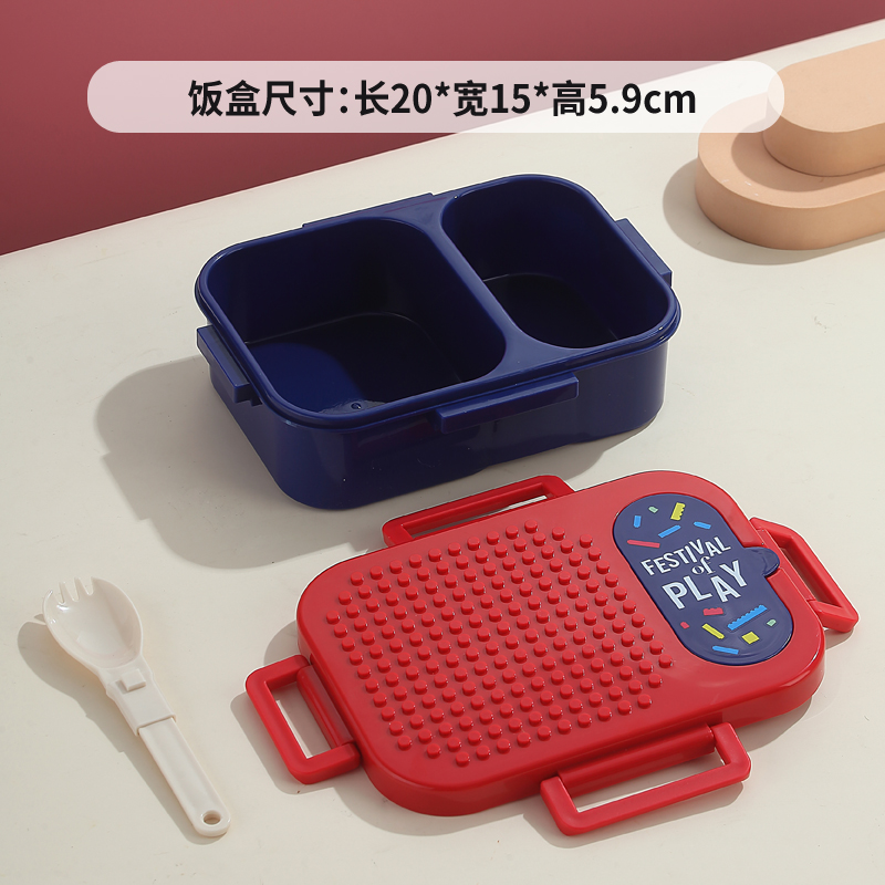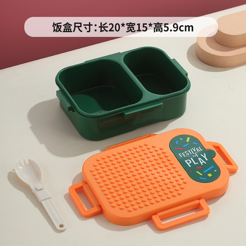 7173-900ml independent sealed block plastic lunch box with 2 compartments (equipped with PP folding spoon)