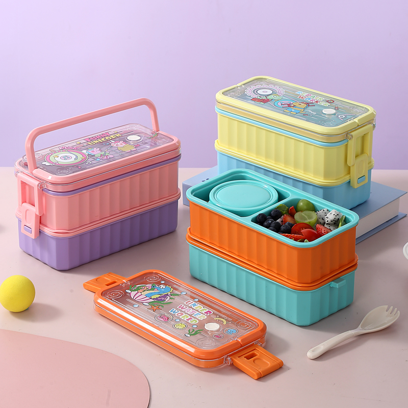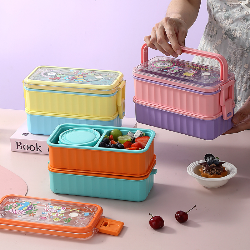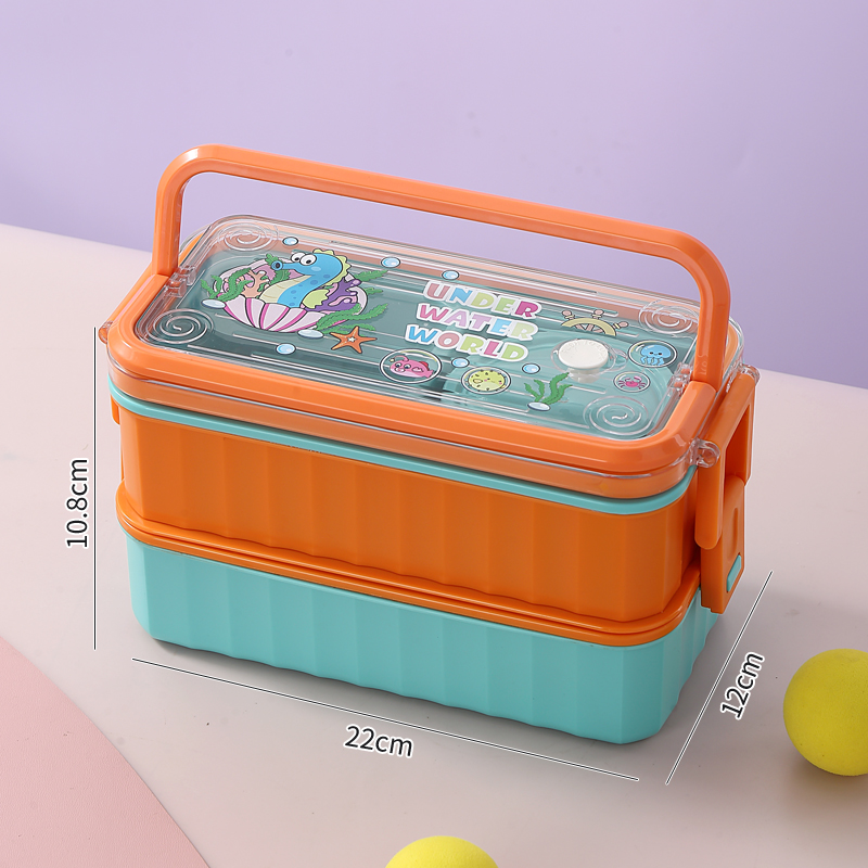 7194-UV Handheld double-layer cartoon plastic lunch box(PP Spork+PP soup bowl)
