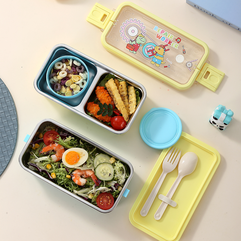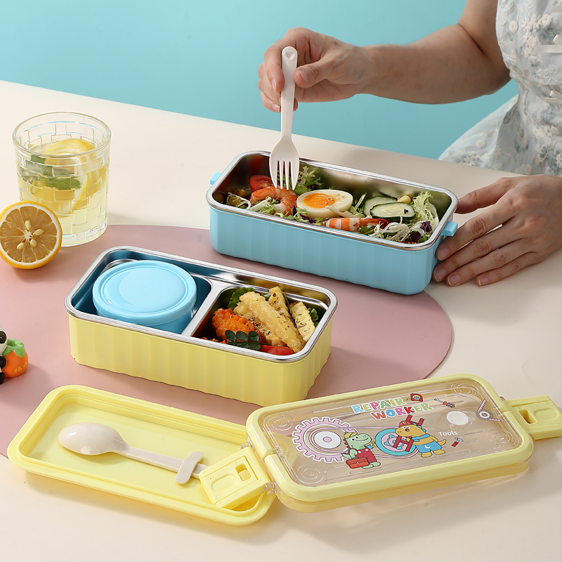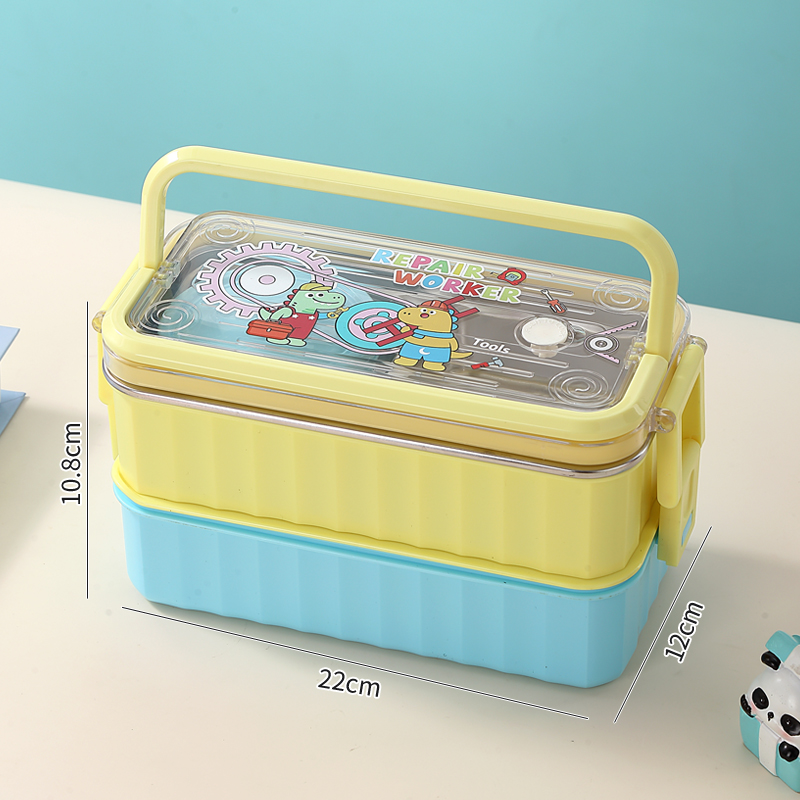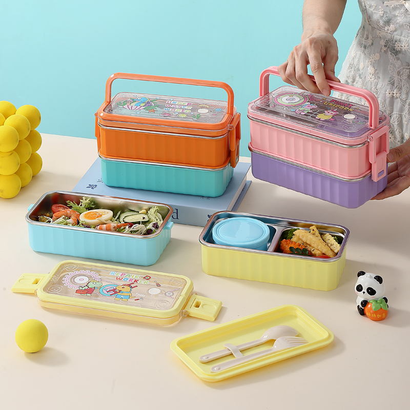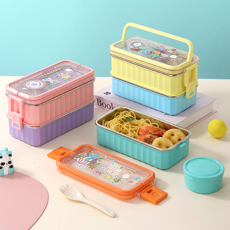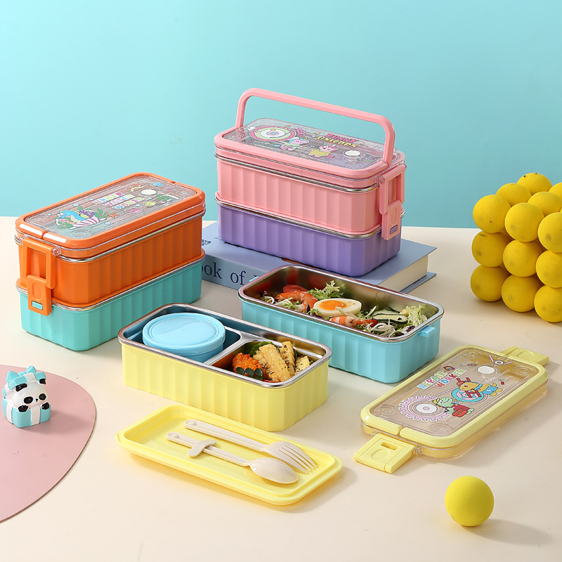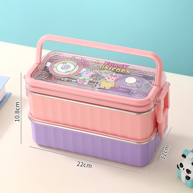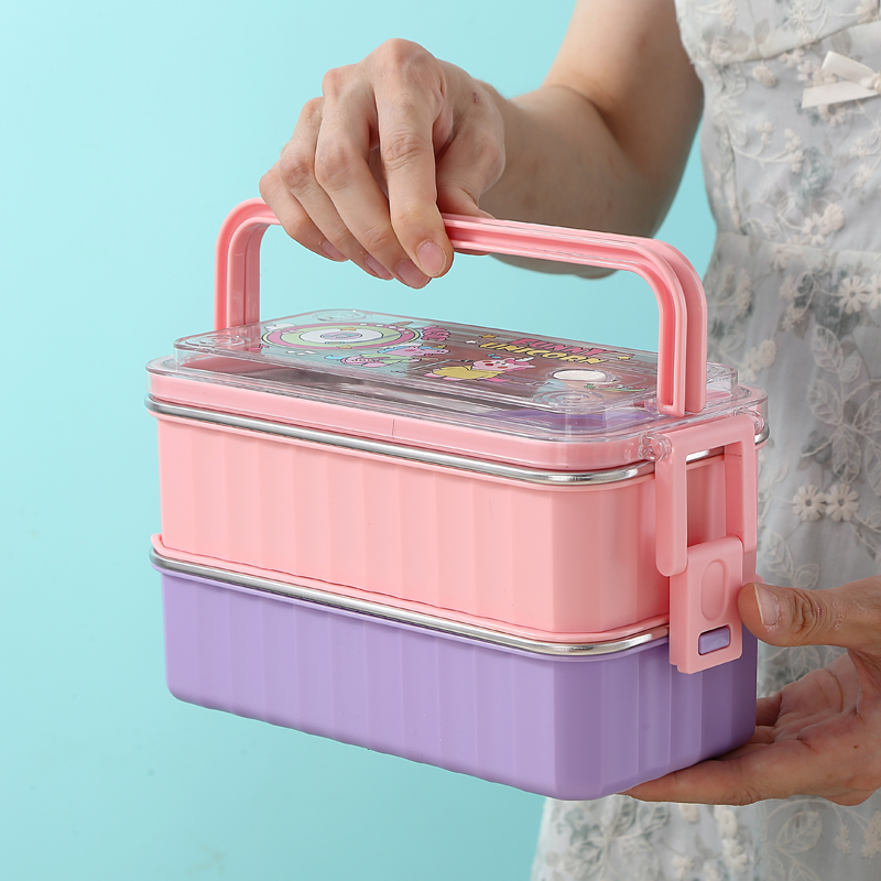 7196-UV Handheld double-layer cartoon stainless steel lunch box(PP Spork+PP soup bowl)