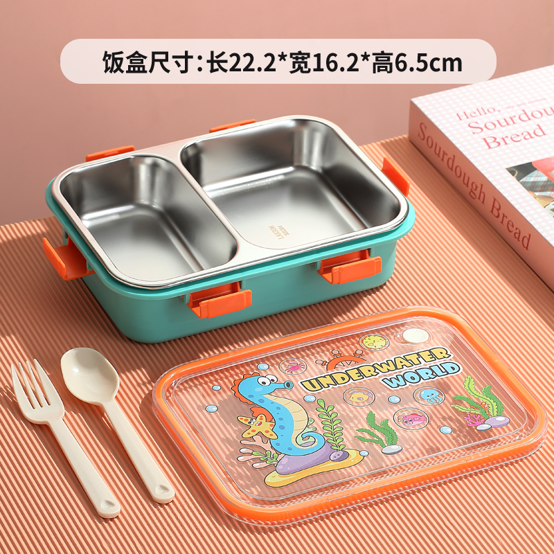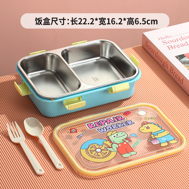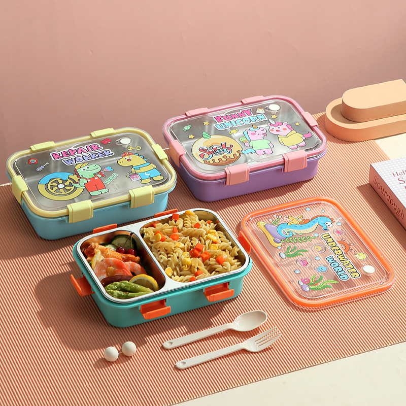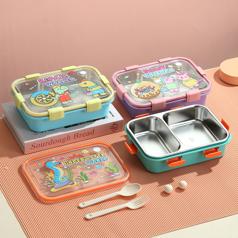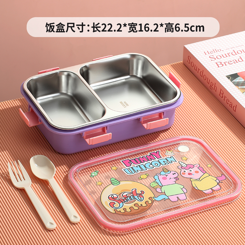 7198-UV 800ml Cartoon stainless steel lunch box-2 Grid(PP fork and ladle)