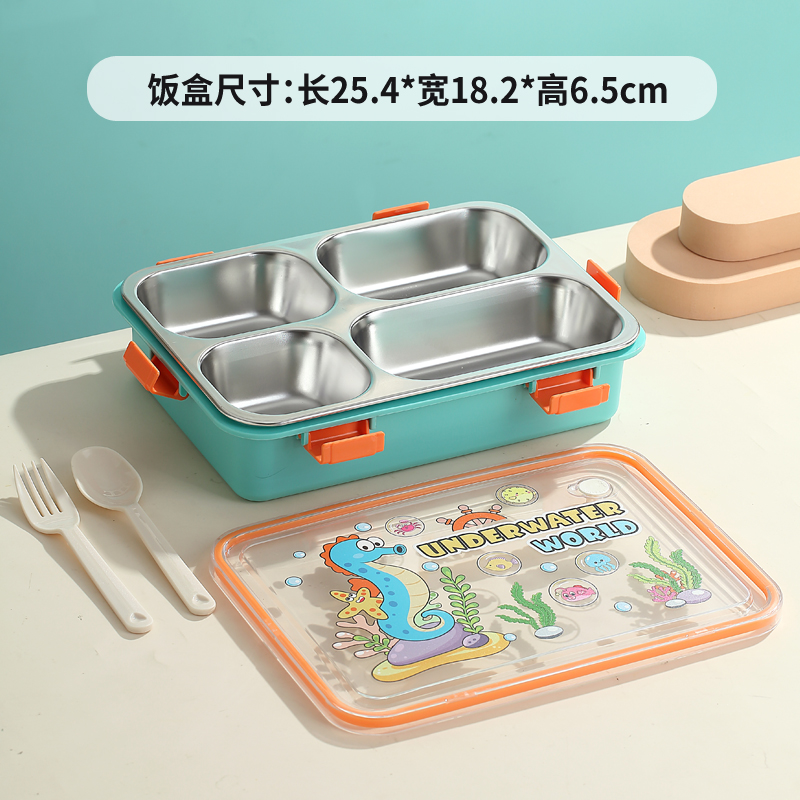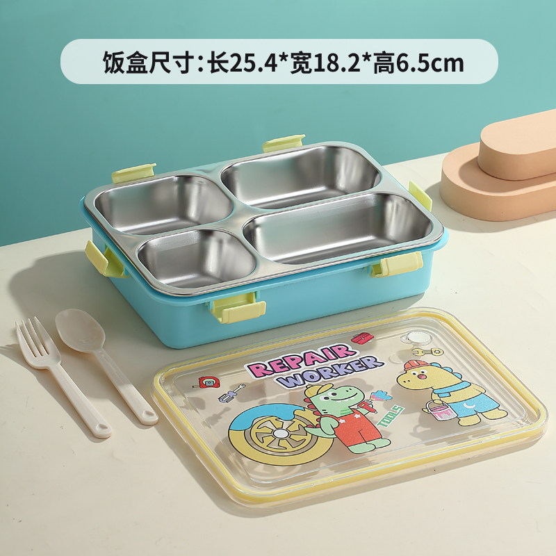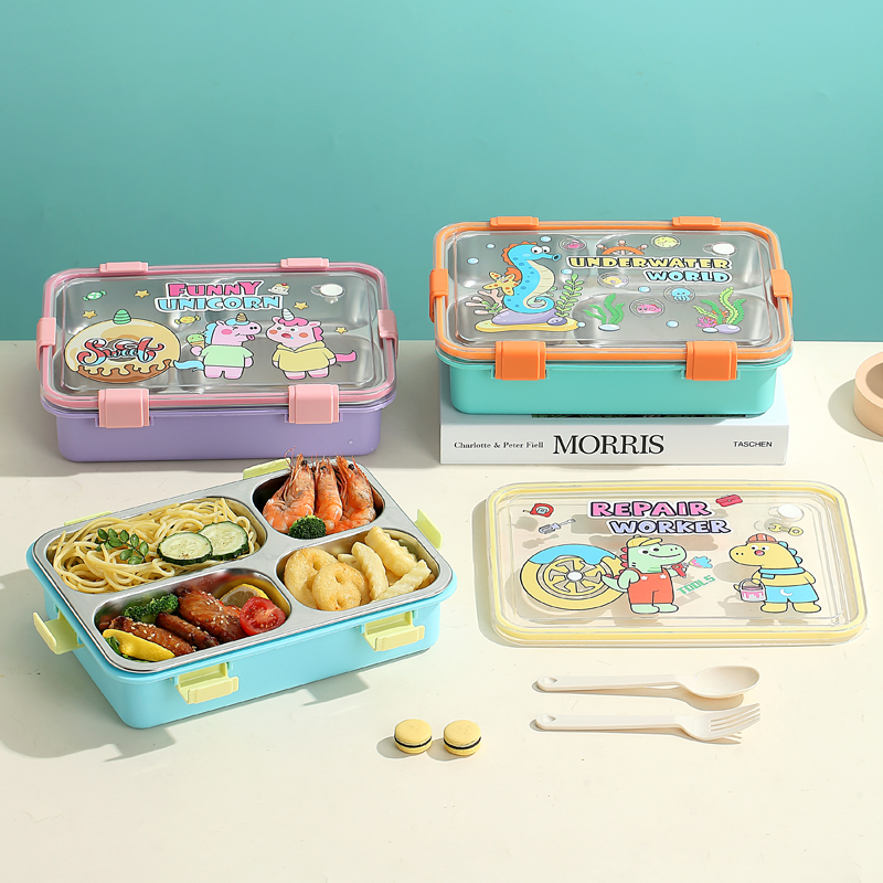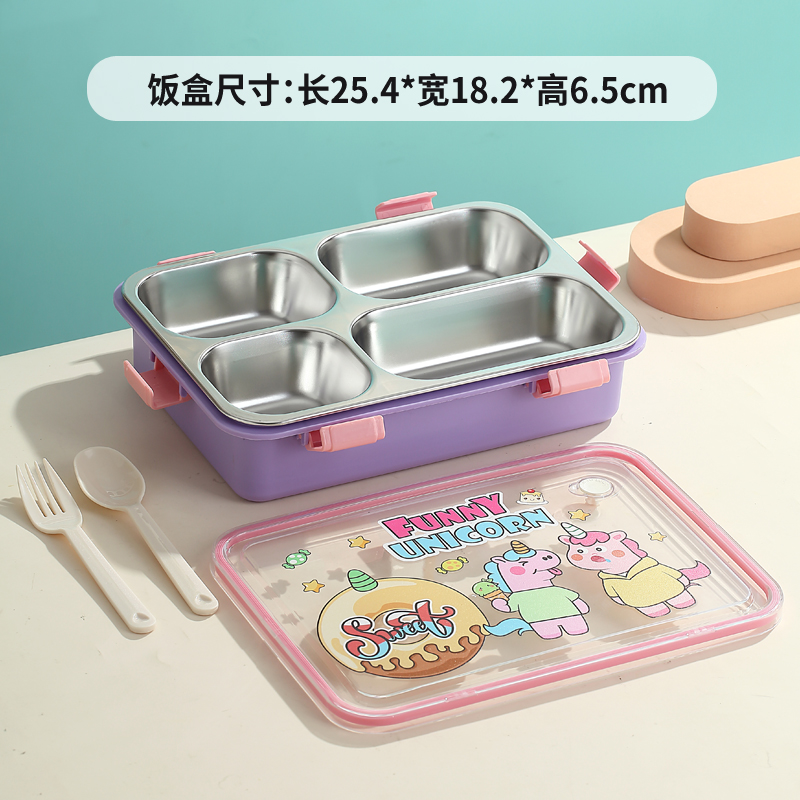 7202-UV 900ml Cartoon stainless steel lunch box-4 Grid(PP fork and ladle)