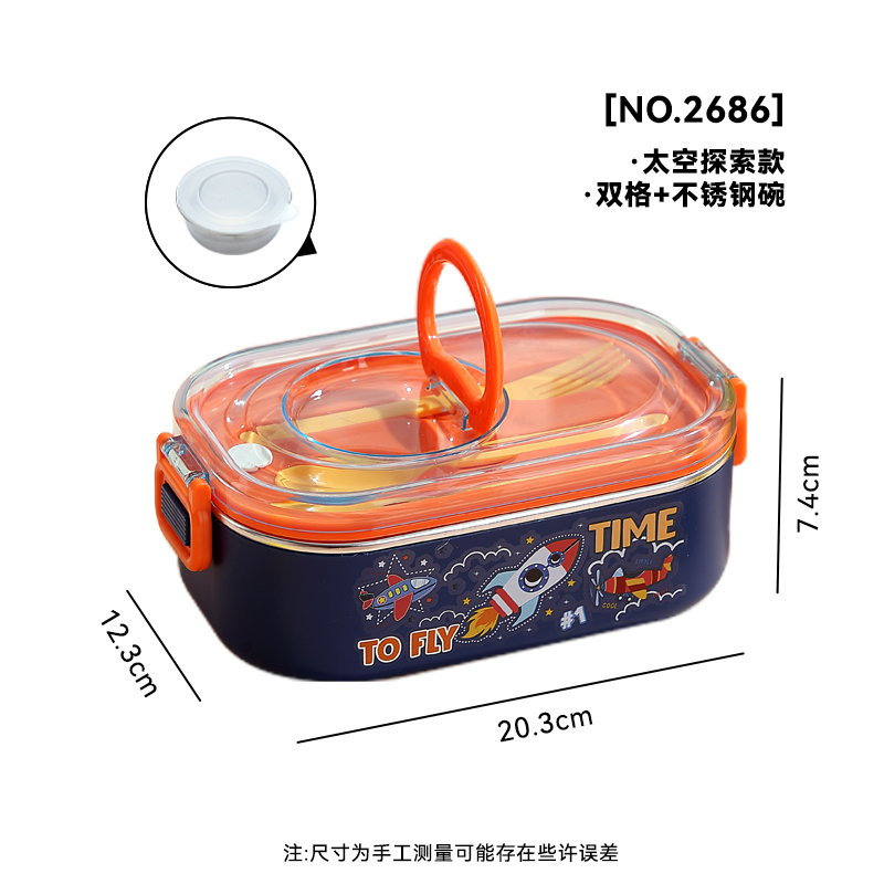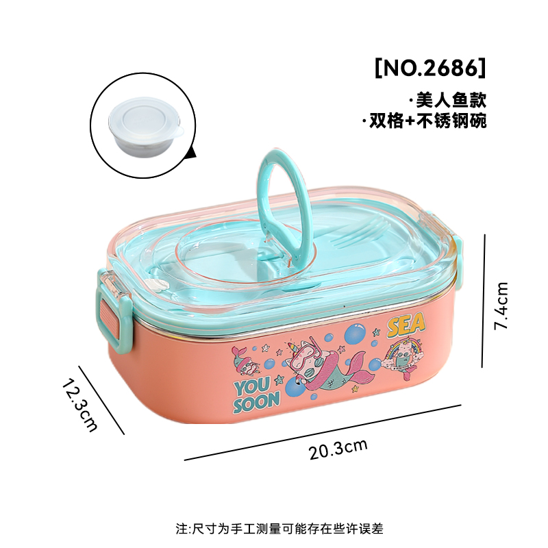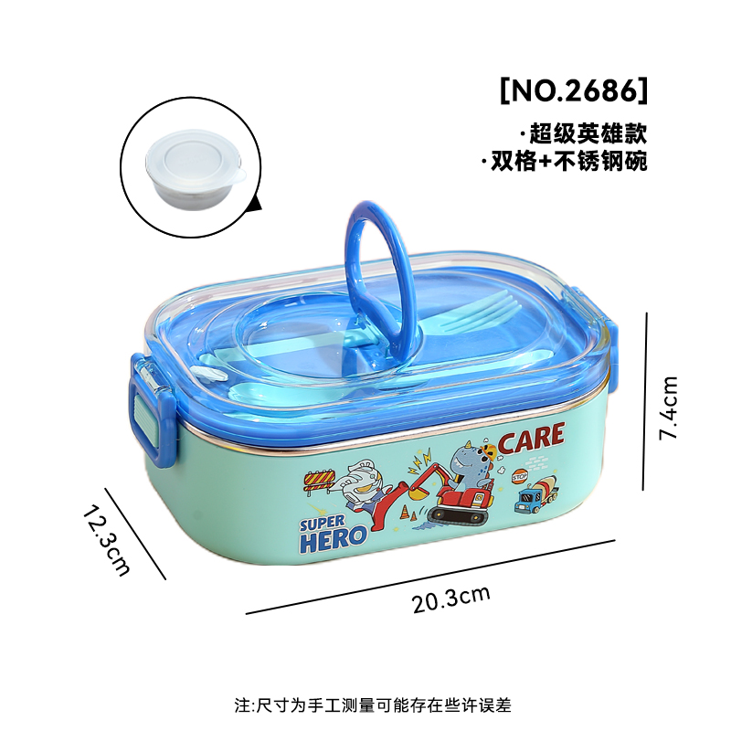 2686-Cartoon-STAINLESS STEEL lunch box (SUS304+ 2 GRID 800ml+SUS304 BOWL 150ml+PP SPOON FOEK)