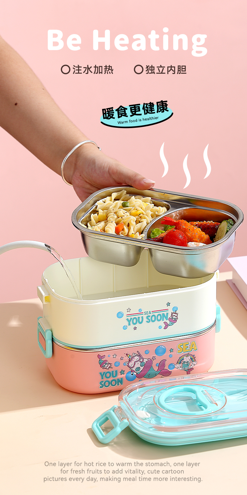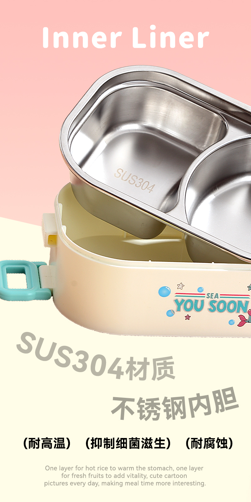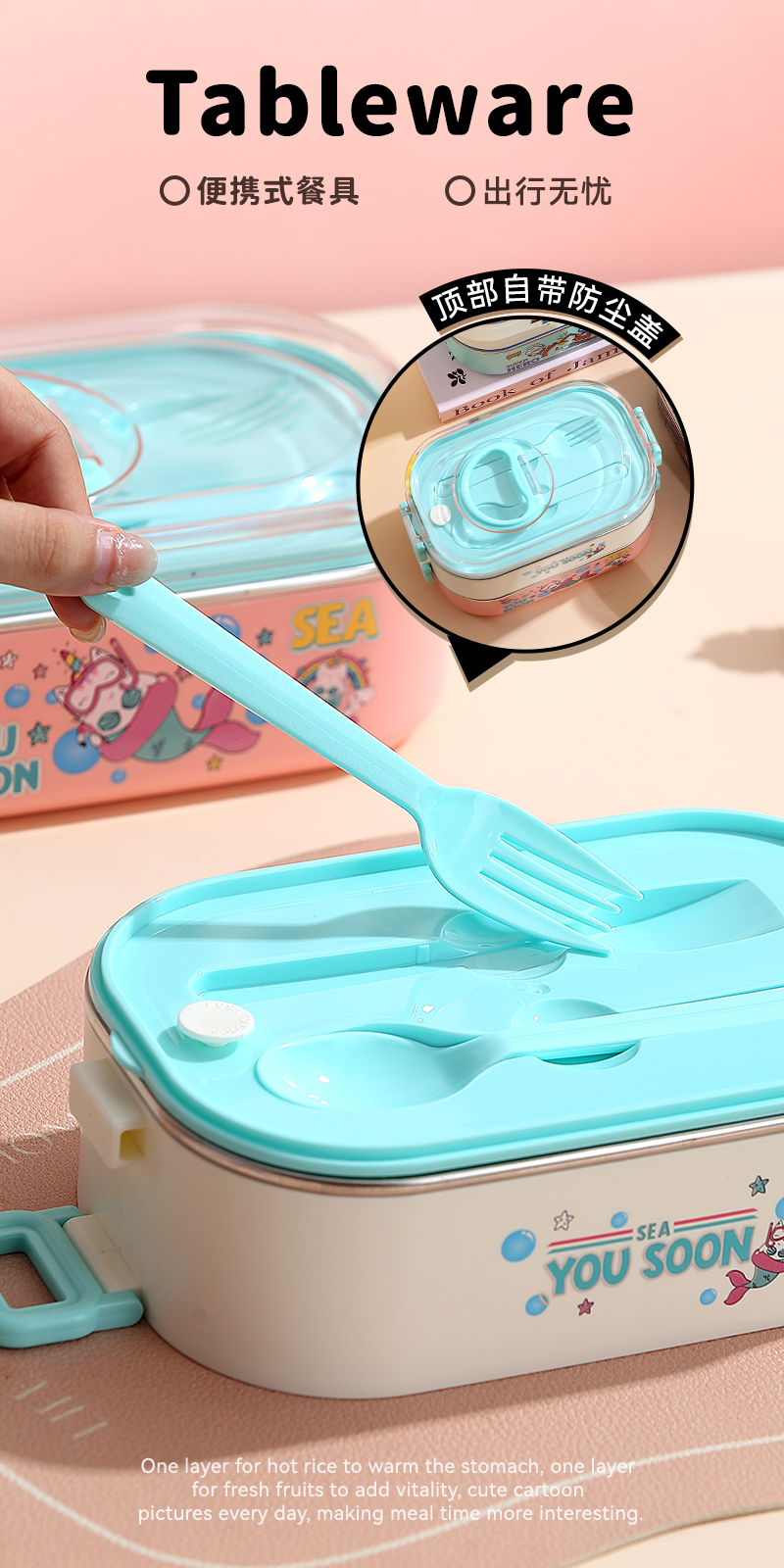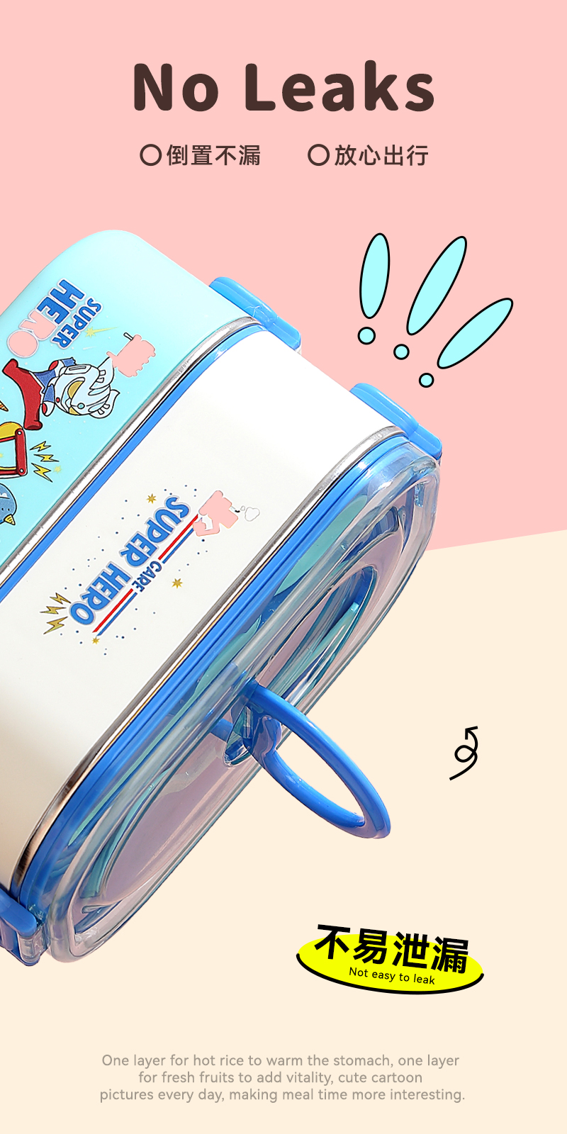 2687-Double-STAINLESS STEEL lunch box(SUS304+ 800ml+900ml+SUS304 BOWL 150ml+PP SPOON FORK)
