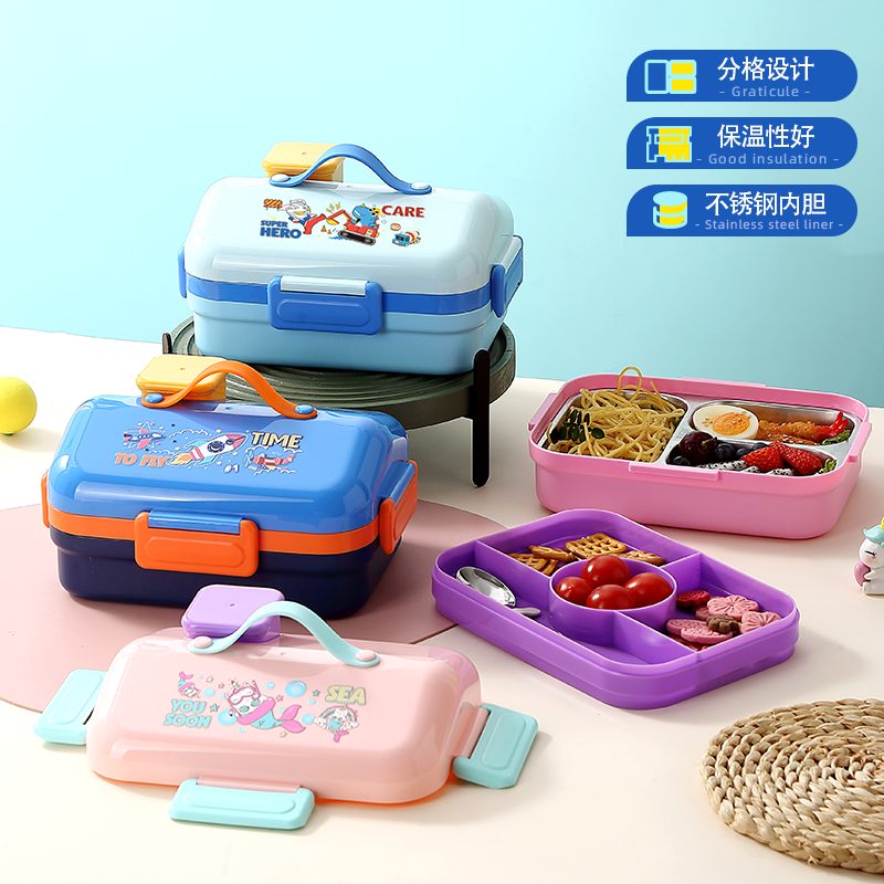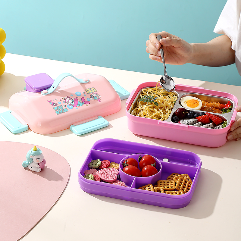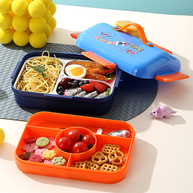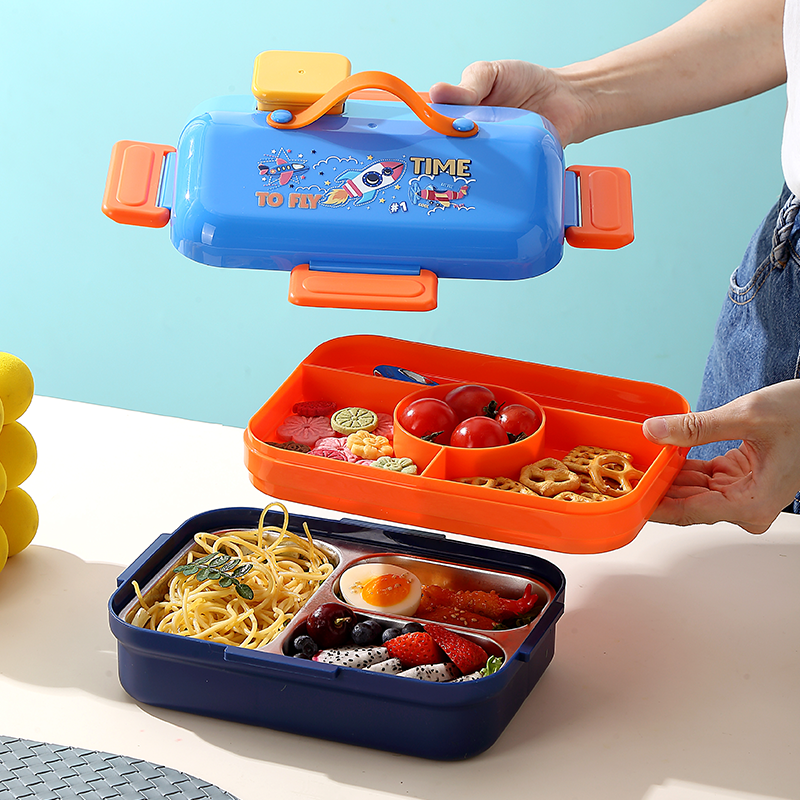 2689-FOOD NOT MIX HOUSE STAINLESS STEEL lunch box (SUS304+3 GRID 750ml+bowl 70ml+SUS SPOON)