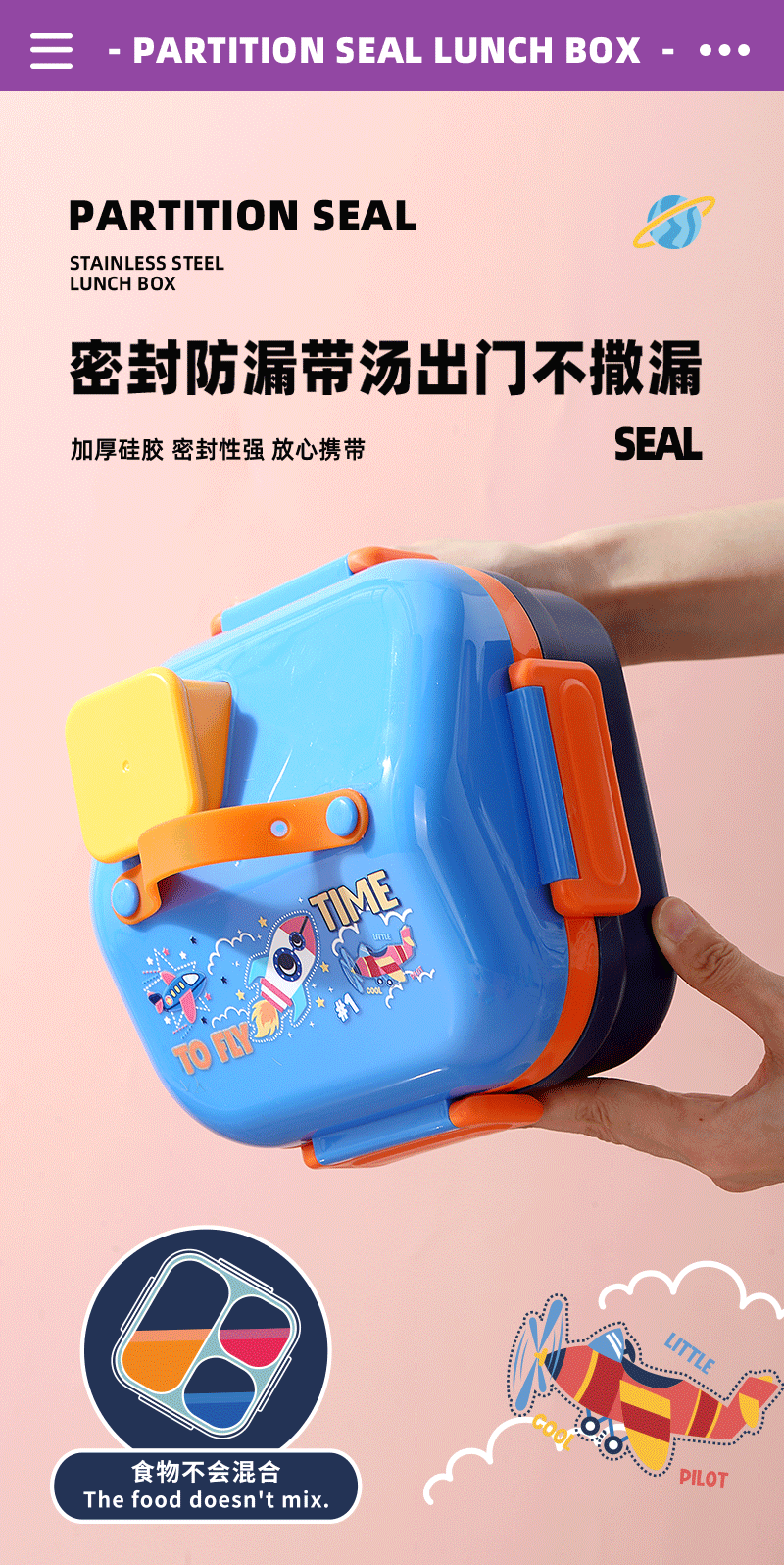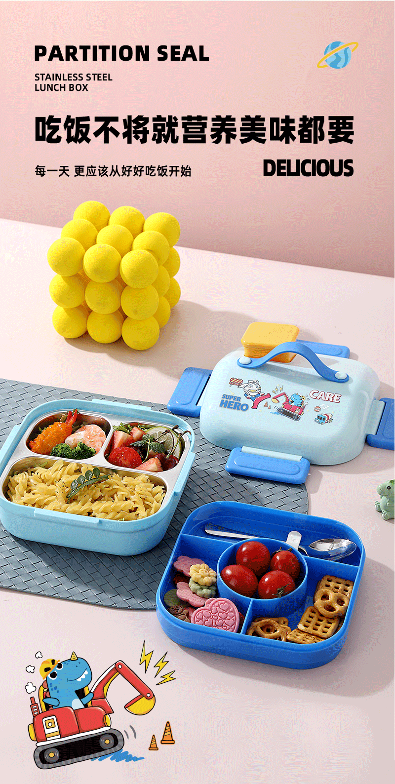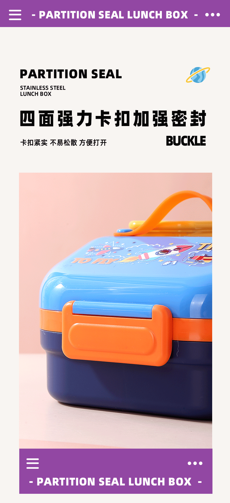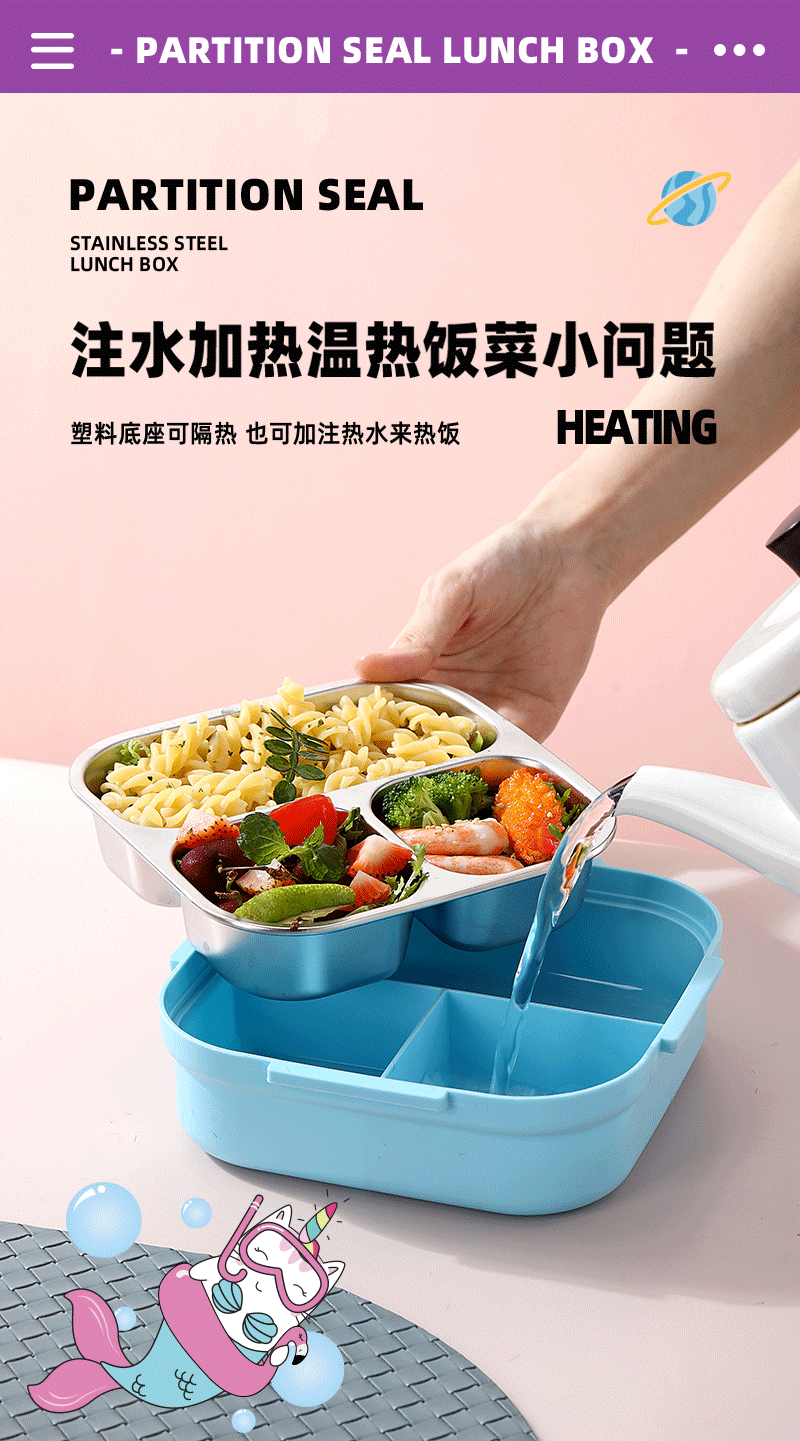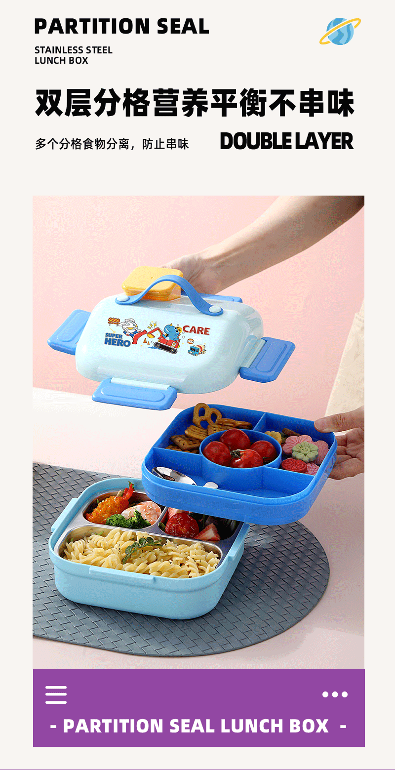 2688-FOOD NOT MIX HOUSE STAINLESS STEEL lunch box(SUS304+3 GRID 700ml+bowl 70ml+SUS SPOON)